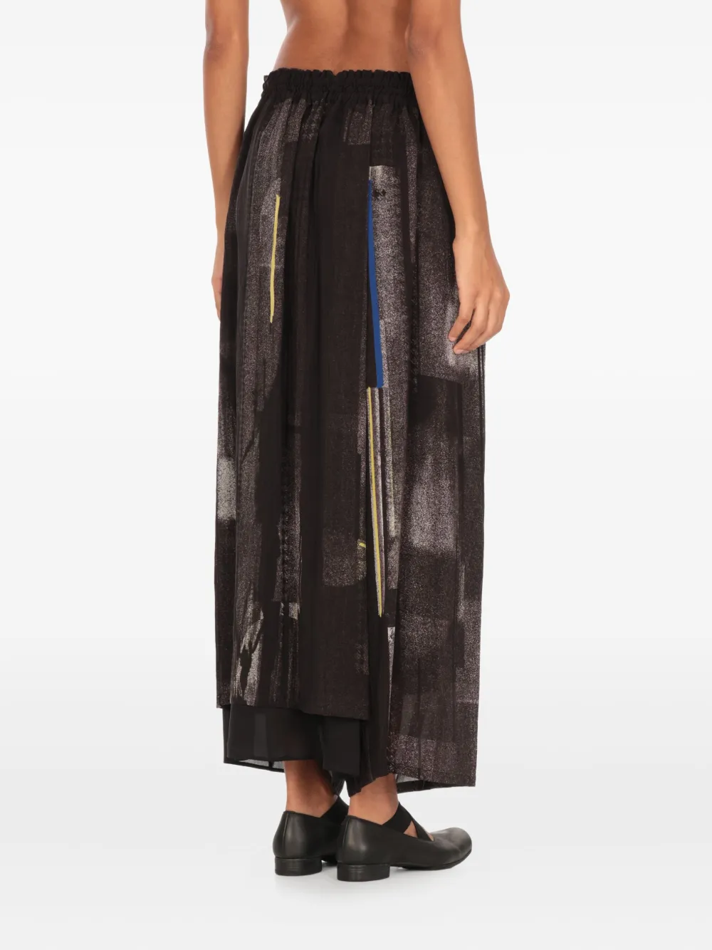 Юбка с абстрактным принтом и драпировкой Y's, черный
