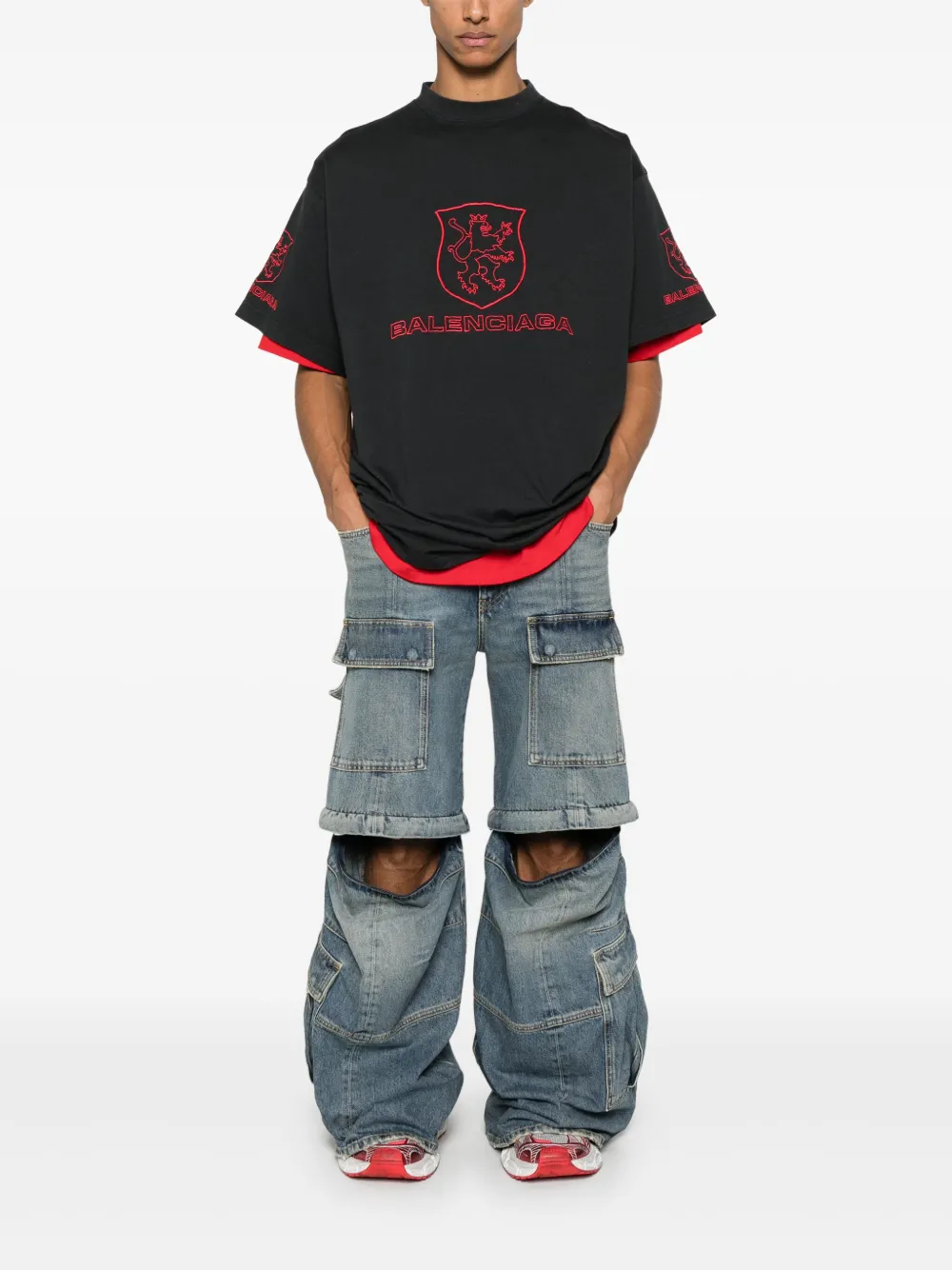 Футболка с вышитым логотипом BALENCIAGA, черный