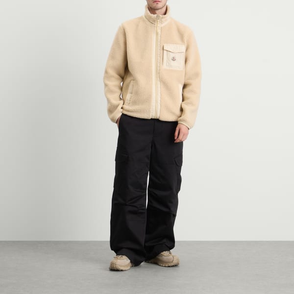 Moncler переосмысливает альпийское тепло в уличном стиле в этой кофте на молнии из плюшевого флиса. Она выполнена из плюшевой ткани, дополнена нагрудным карманом из нейлона в тон и фирменной фурнитурой. Мягкий и функциональный слой сочетает в себе грубую текстуру и изысканный современный стиль.