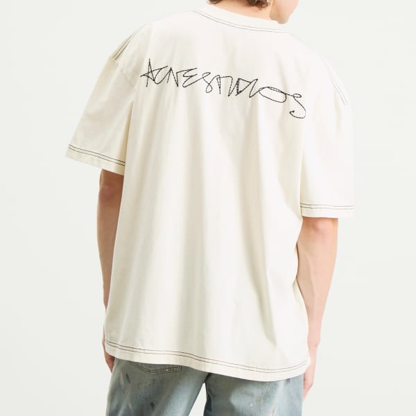 Эта футболка Acne Studios, ставшая классикой бренда, переосмыслена и сочетает в себе четкие линии и изысканный фирменный стиль. Футболка выполнена из тонкого органического хлопкового джерси, имеет свободный крой, контрастную строчку и длину до бёдер. Вышитый сезонный автограф добавляет яркий графический штрих – минималистичный, выразительный и соответствующий оригинальному скандинавскому стилю Acne.