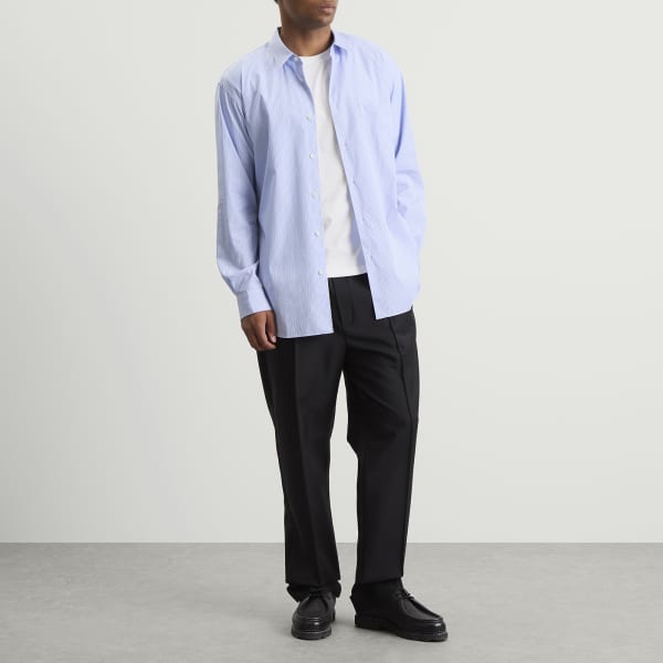 Рубашка Comme Des Garçons из коллекции Diffusion Line – это чистые линии, качественные ткани и классические силуэты, которые легко переходят из дневного образа в вечерний. Эта полосатая рубашка выполнена из мягкого поплина с плотной, но комфортной текстурой. Благодаря изящным деталям, она станет изящным базовым предметом гардероба, привнося сдержанную изысканность в любой гардероб.