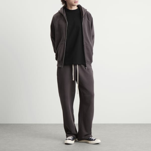 Плотная толстовка с капюшоном на молнии реглан от Les Tien — яркий пример элегантных базовых моделей. Изготовлена в США из флиса с начесом, окрашена в готовом виде и предварительно усажена для мягкости и комфорта. Рукава реглан обеспечивают свободную посадку, а ребристые отделки и элегантная застежка-молния добавляют изысканности.