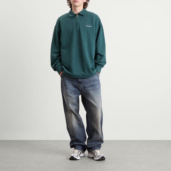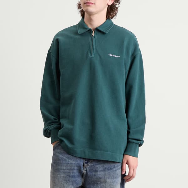 Толстовка Carhartt WIP из хлопкового пике отличается практичным воротником-трубой и застёжкой-молнией до середины груди. Свободный крой, вышитая буква «С» на груди.
