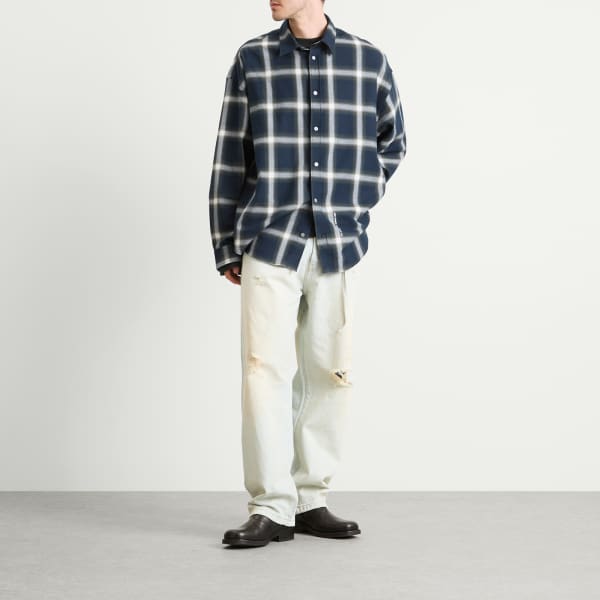 Эта рубашка Acne Studios от лейбла Джонни Йоханссона – воплощение мастерства и смелого дизайна. Изготовленная из органического хлопка саржевого переплетения, фланель персикового оттенка обеспечивает мягкость. Принт в виде клетки, выделяющийся в любой ситуации, дополняет образ.