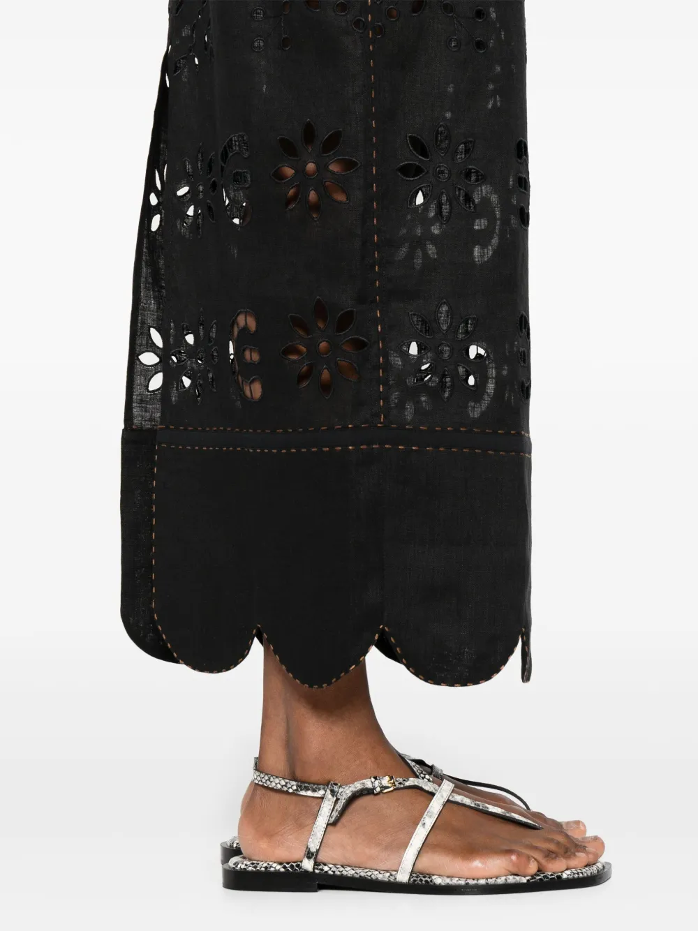 Черный эластичный пояс, перфорированный дизайн, разрез сзади, фестончатый край