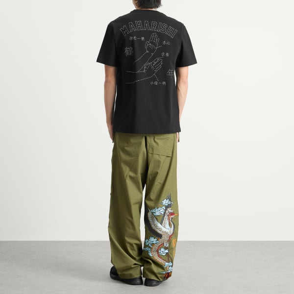 Объединяя восточные и западные влияния, Maharishi неизменно создаёт вещи, наполненные глубоким смыслом. Футболка ha-Paizhi Sashiko 1582 года изготовлена из органического хлопка и украшена вышитым на спине рисунком кунг-фу в стиле «рис», а также винтажной аппликацией с логотипом Maharishi на груди.