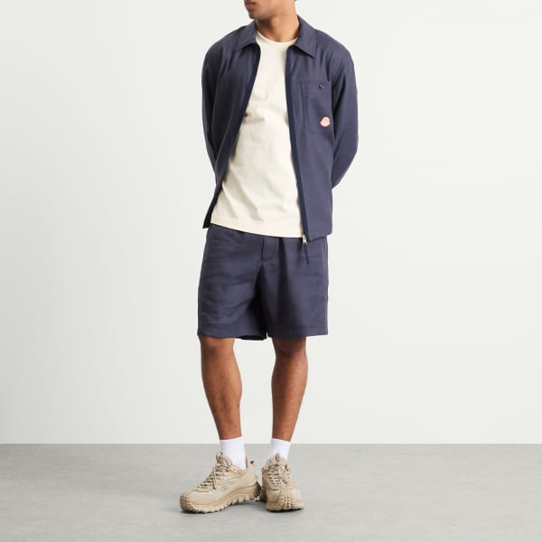 Эти шорты Moncler Genius x Gilga Farm, символизирующие это сотрудничество лёгких слоёв, сшиты из плотного смесового льна. Они дополнены боковыми и задними карманами и нашивкой с логотипом, разработанной Дональдом Гловером.