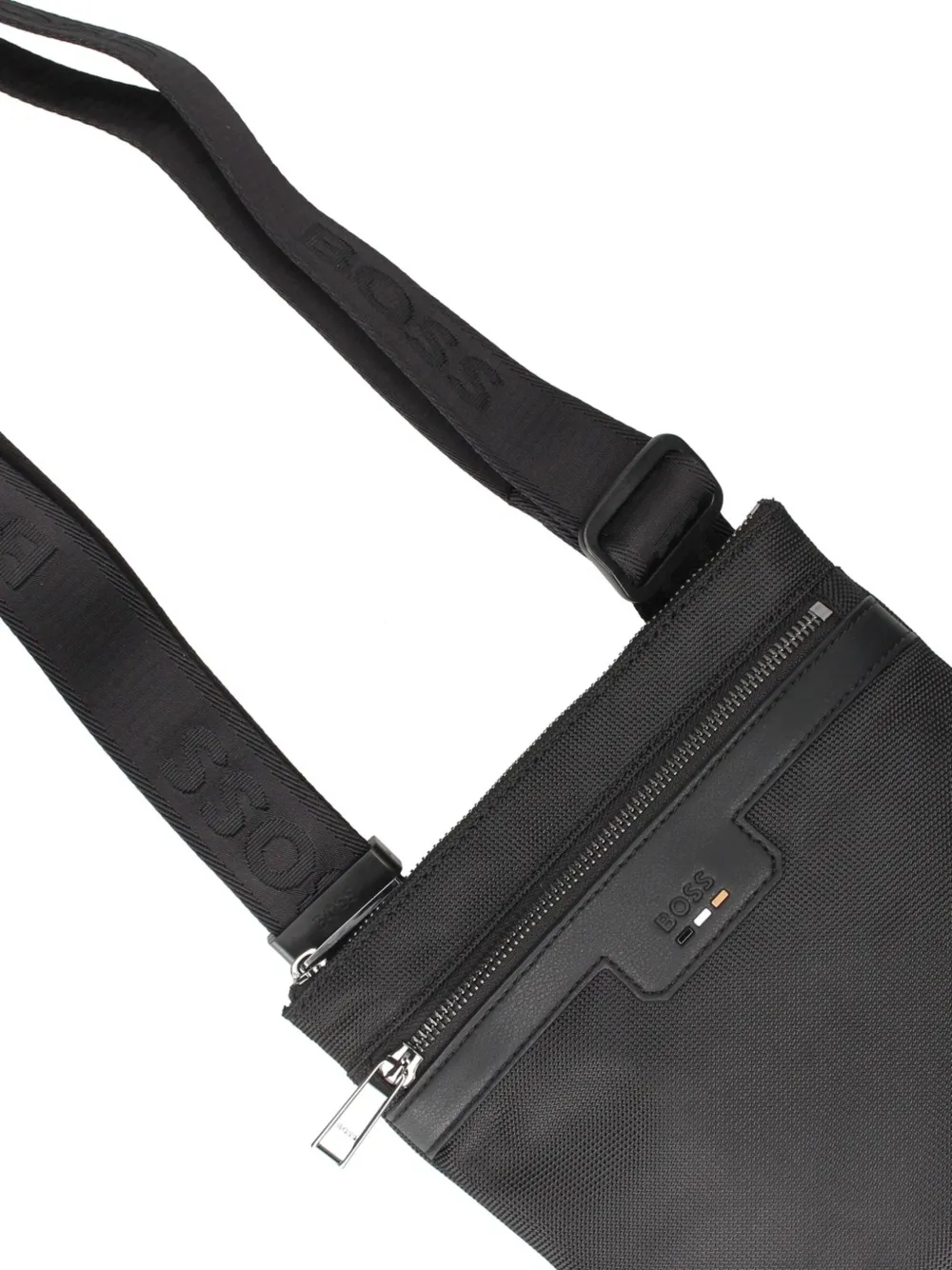 Сумка-мессенджер с тисненым логотипом BOSS, черный