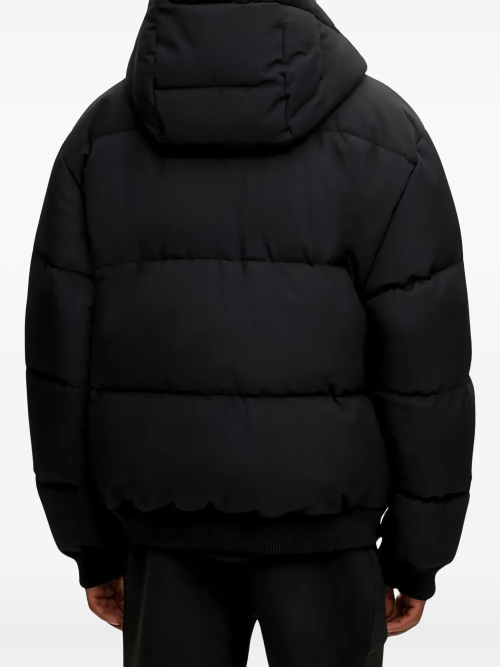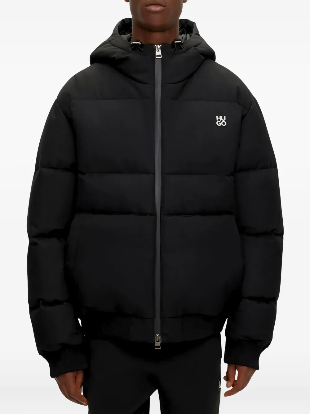 Черная передняя застежка-молния с двумя бегунками, мягкая конструкция, капюшон на шнурке, длинные рукава, прорезиненный логотип, два боковых кармана на молнии, ребристые манжеты и подол