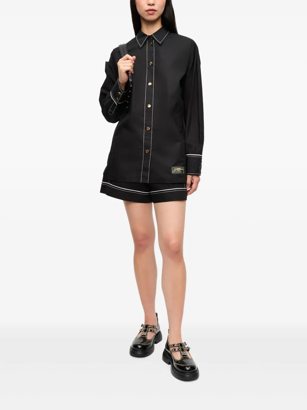 Рубашка с контрастной отделкой GANNI, черный