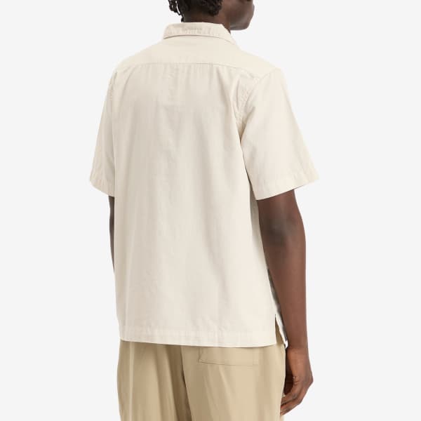 Рубашка для отпуска, переосмысленная в стиле Service Works, — лёгкая и с характером. Изготовленная из лёгкого плотного органического хлопка с отложным воротником и вышивкой на нагрудном кармане, она идеально подойдёт для солнечных дней и спокойных вечеров.