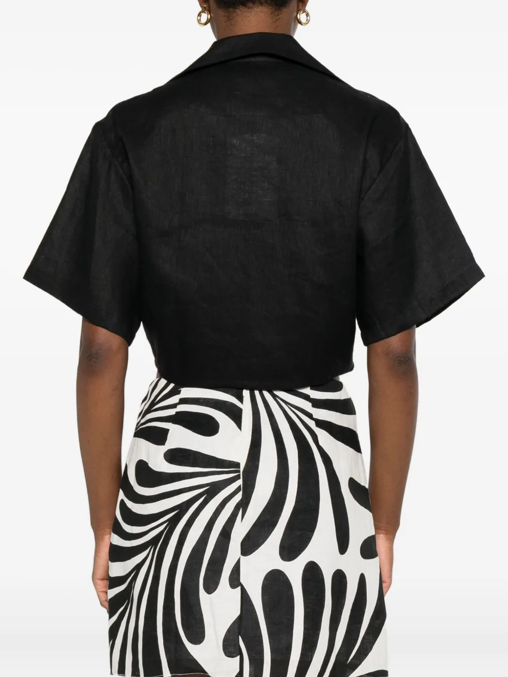 Черная застежка на пуговицы спереди, короткие рукава