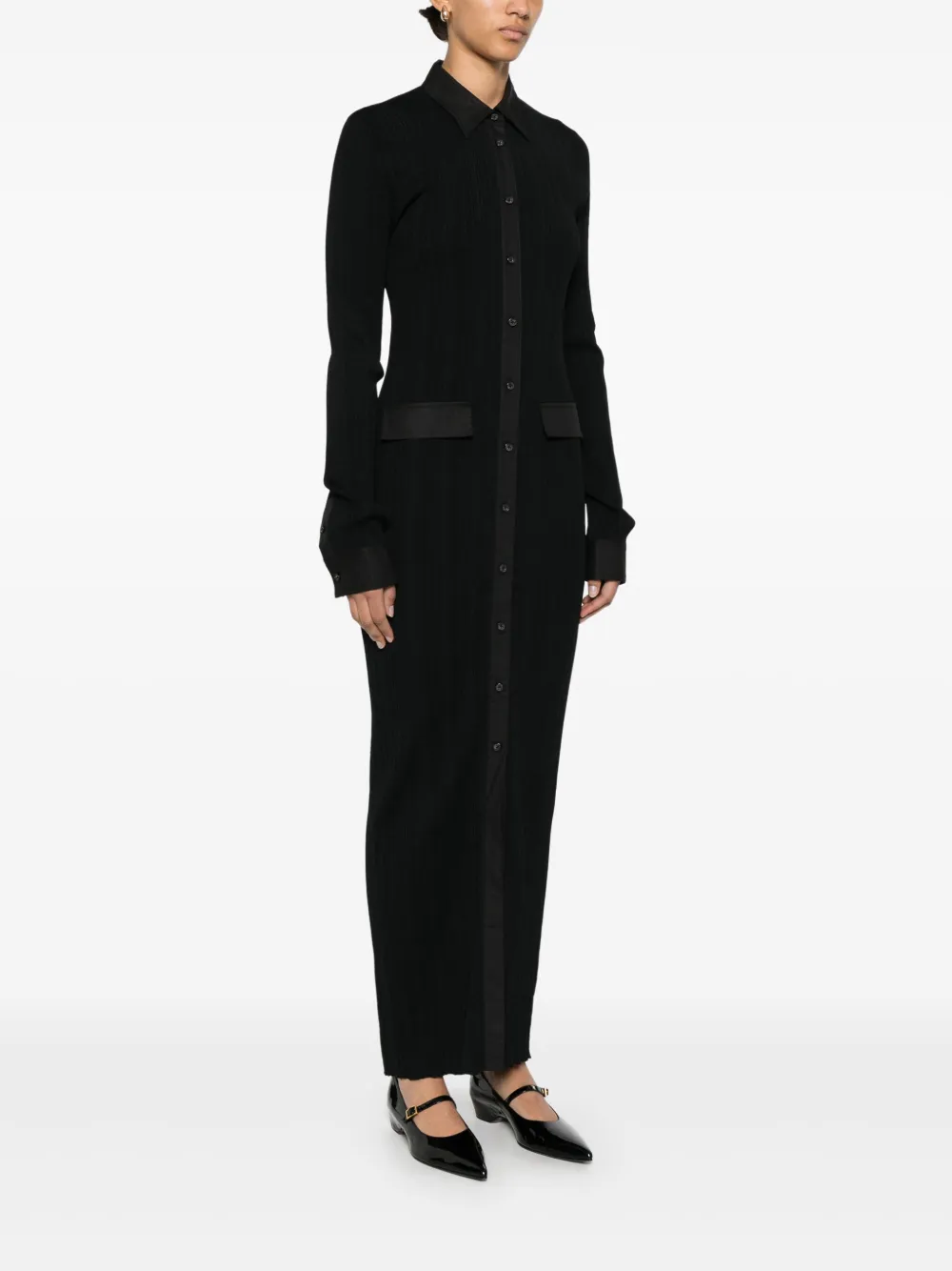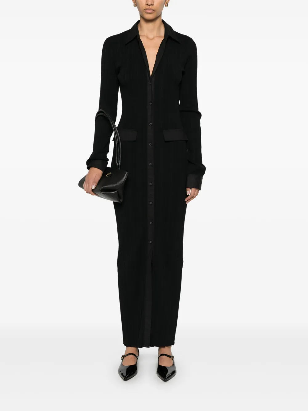 Трикотажное платье-рубашка макси TOTEME, черный