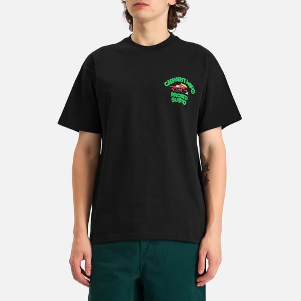 Футболка Carhartt WIP с ярким принтом выполнена из лёгкого хлопкового трикотажа, обеспечивающего комфорт в течение всего дня. Свободный крой и принт Pronto Subito вдохновлены ресторанами, где можно заказать пиццу на вынос.