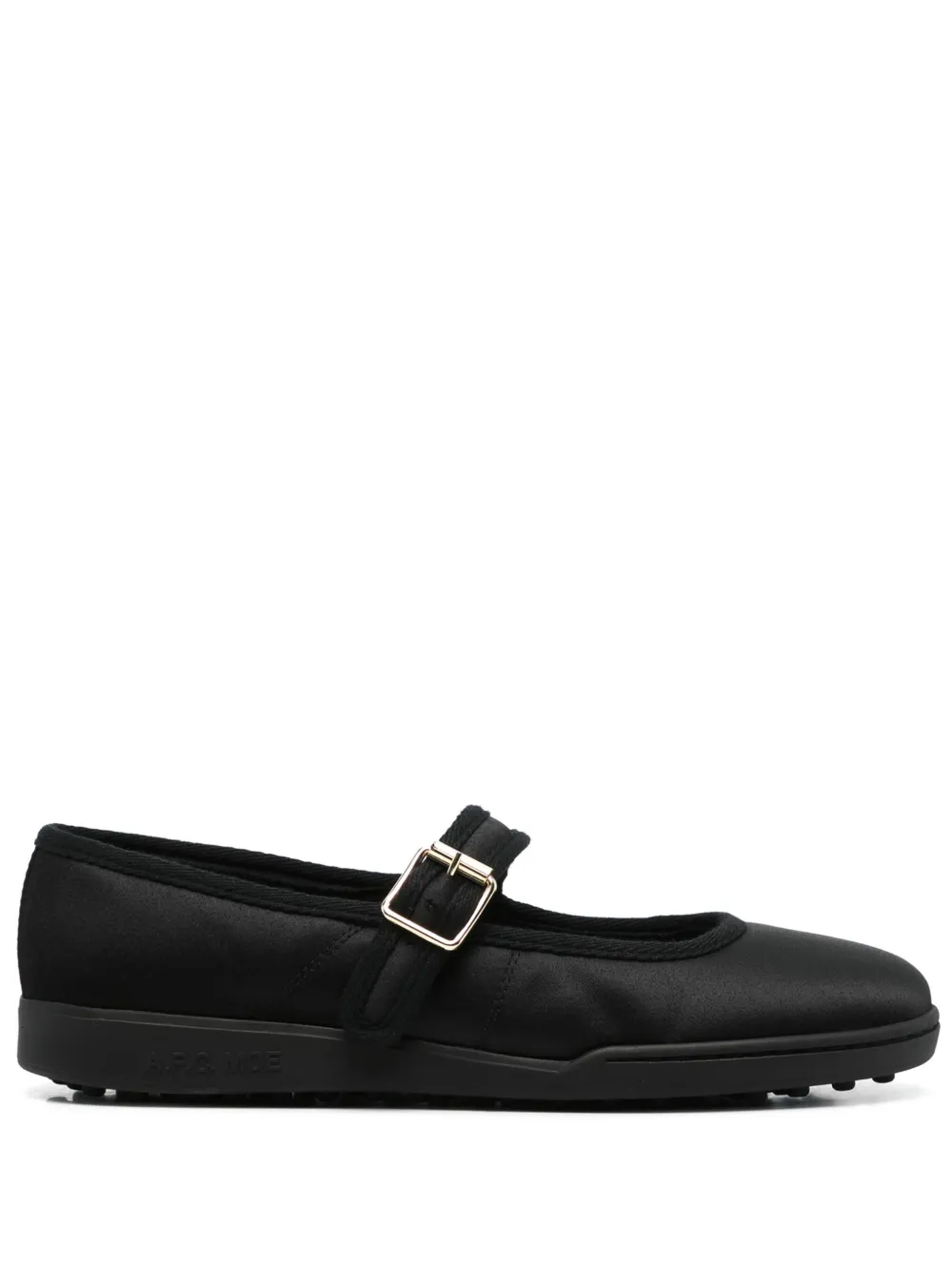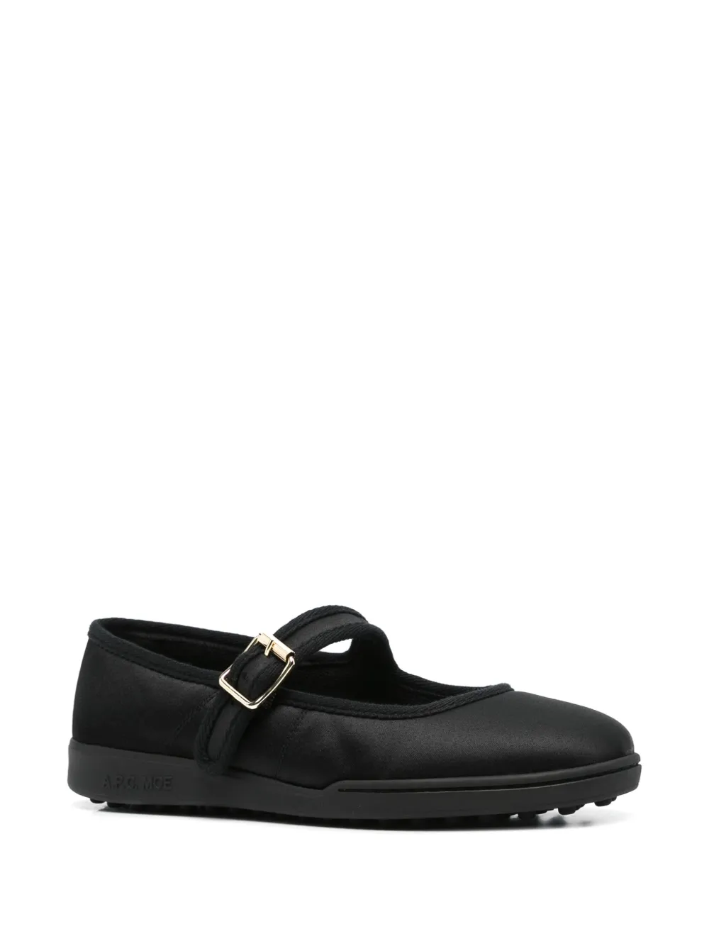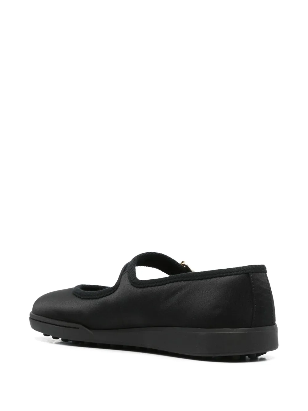 Черная застежка на пряжке сбоку, плоская резиновая подошва, тисненый логотип сбоку, фирменная стелька