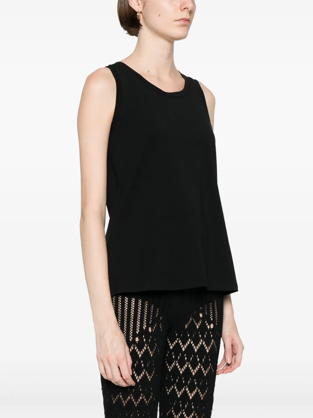 Черная нашивка с логотипом на спине, круглый вырез горловины, без рукавов