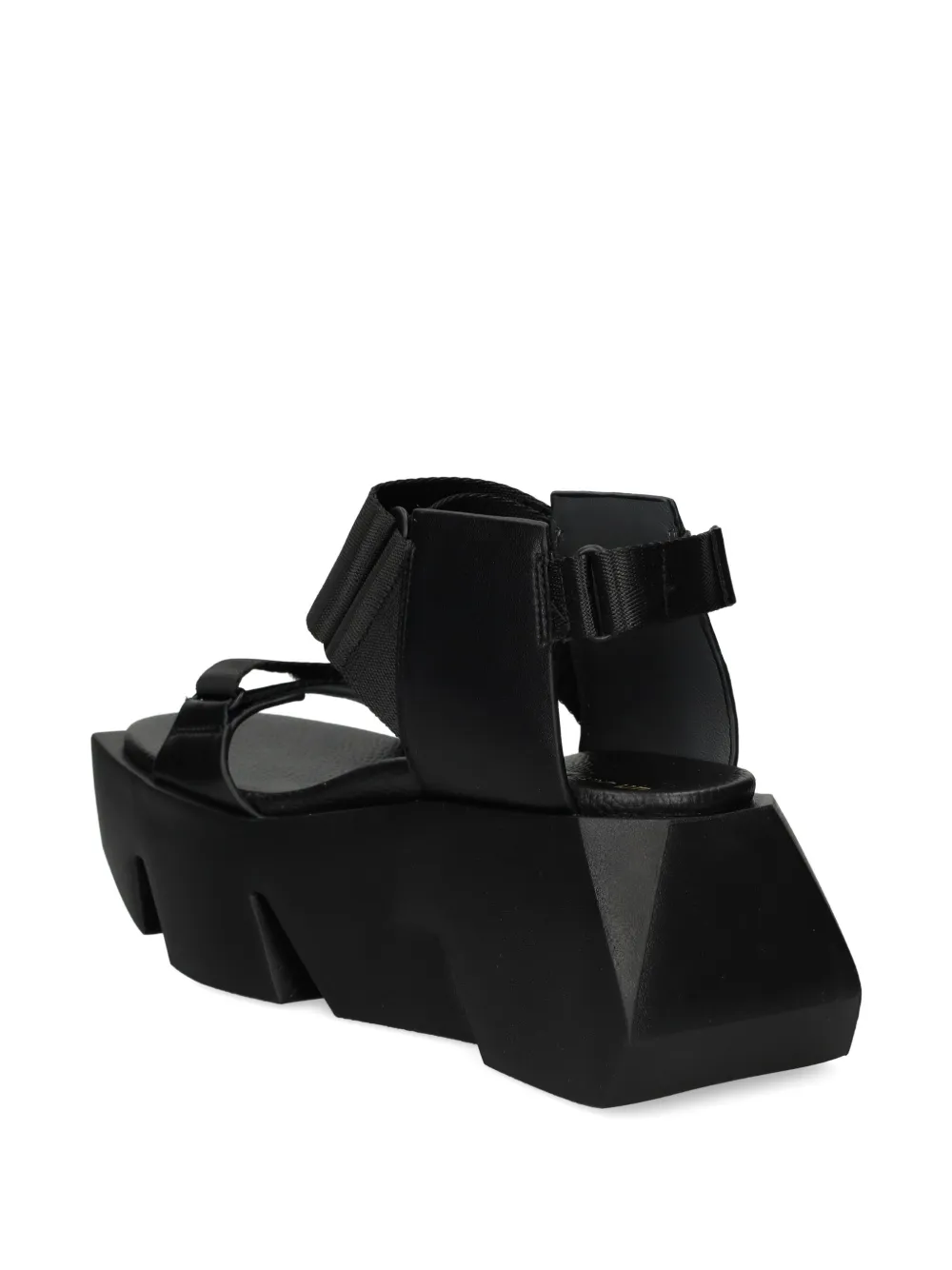 Черные туфли на липучке, с открытой квадратной подошвой и открытым носком