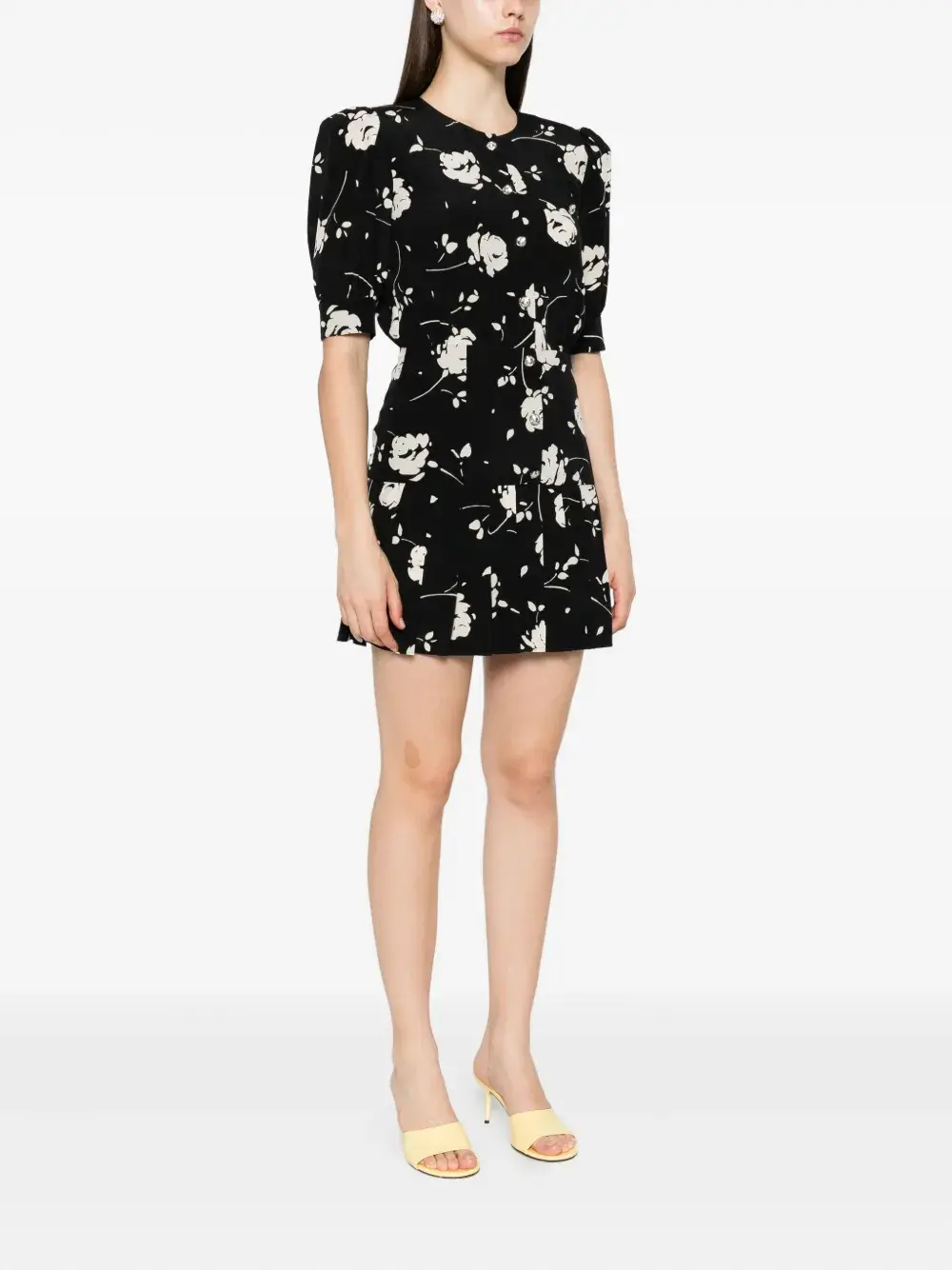 Мини-платье с принтом роз Alessandra Rich, черный