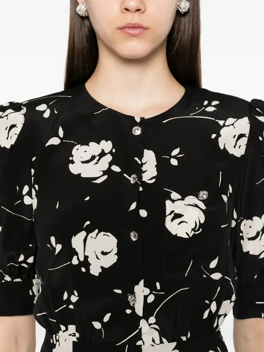 Черная застежка на пуговицы спереди, короткие рукава