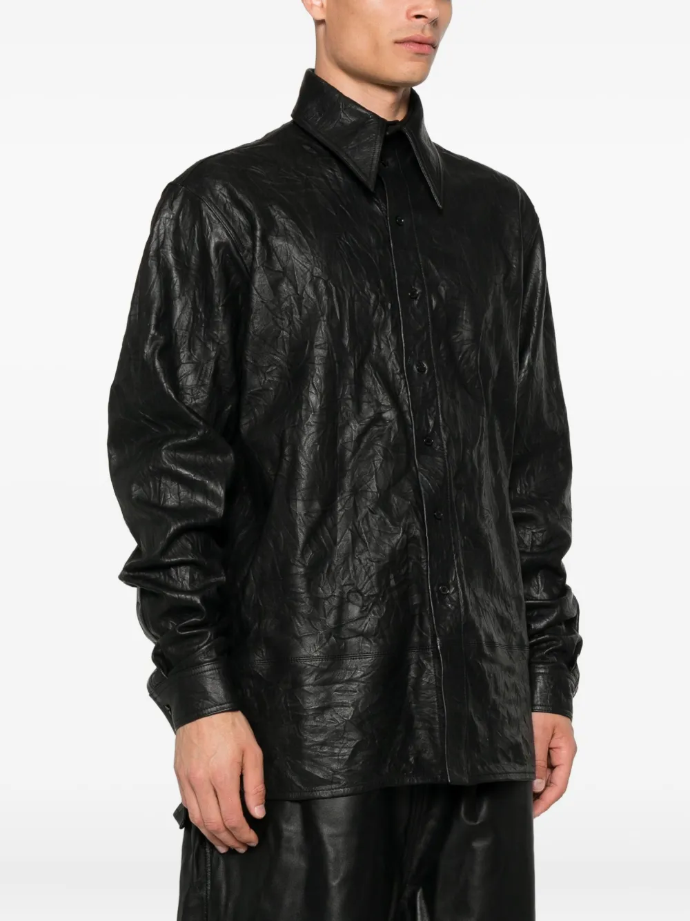 Мятая кожаная рубашка LỰU ĐẠN, черный