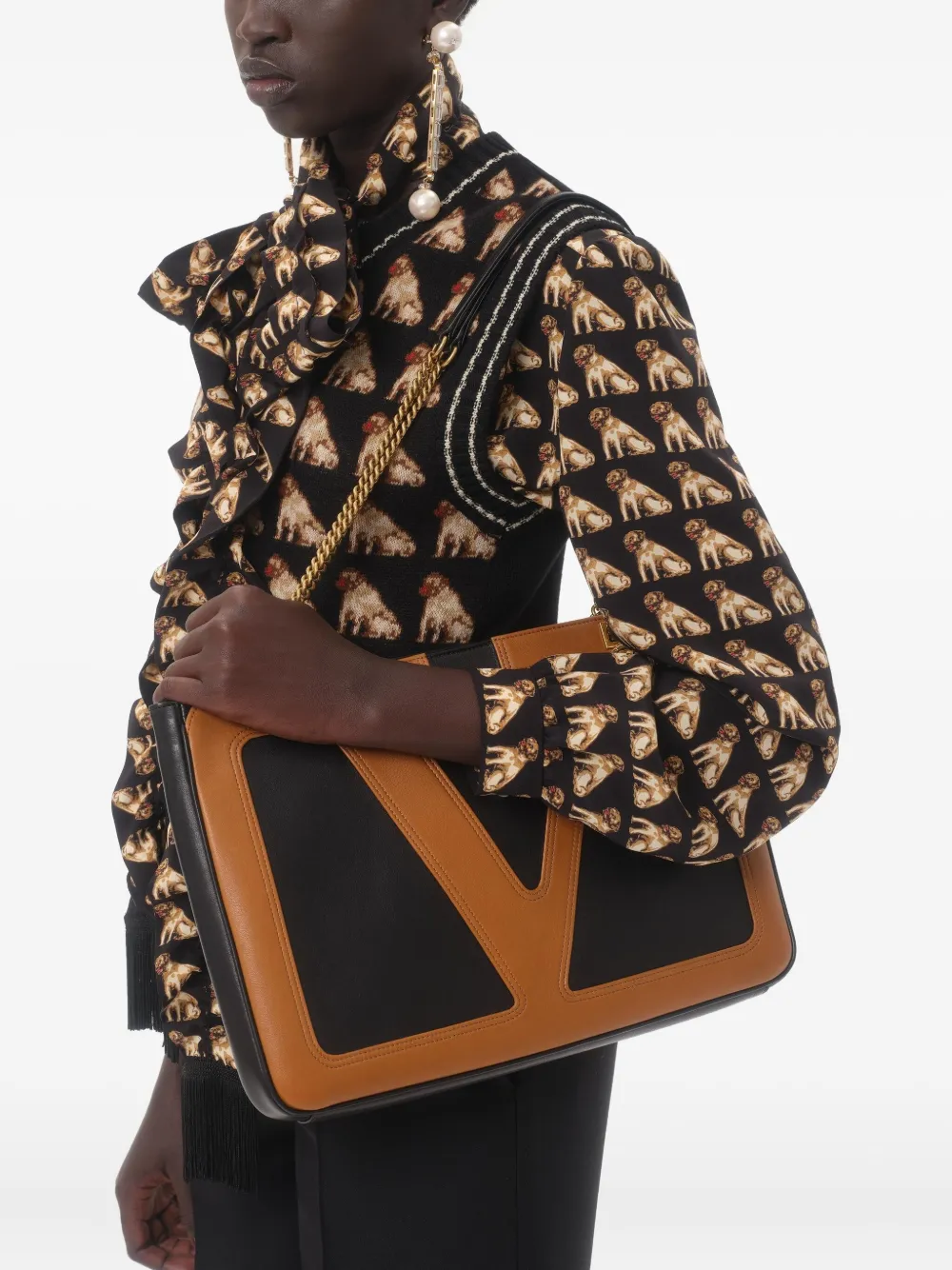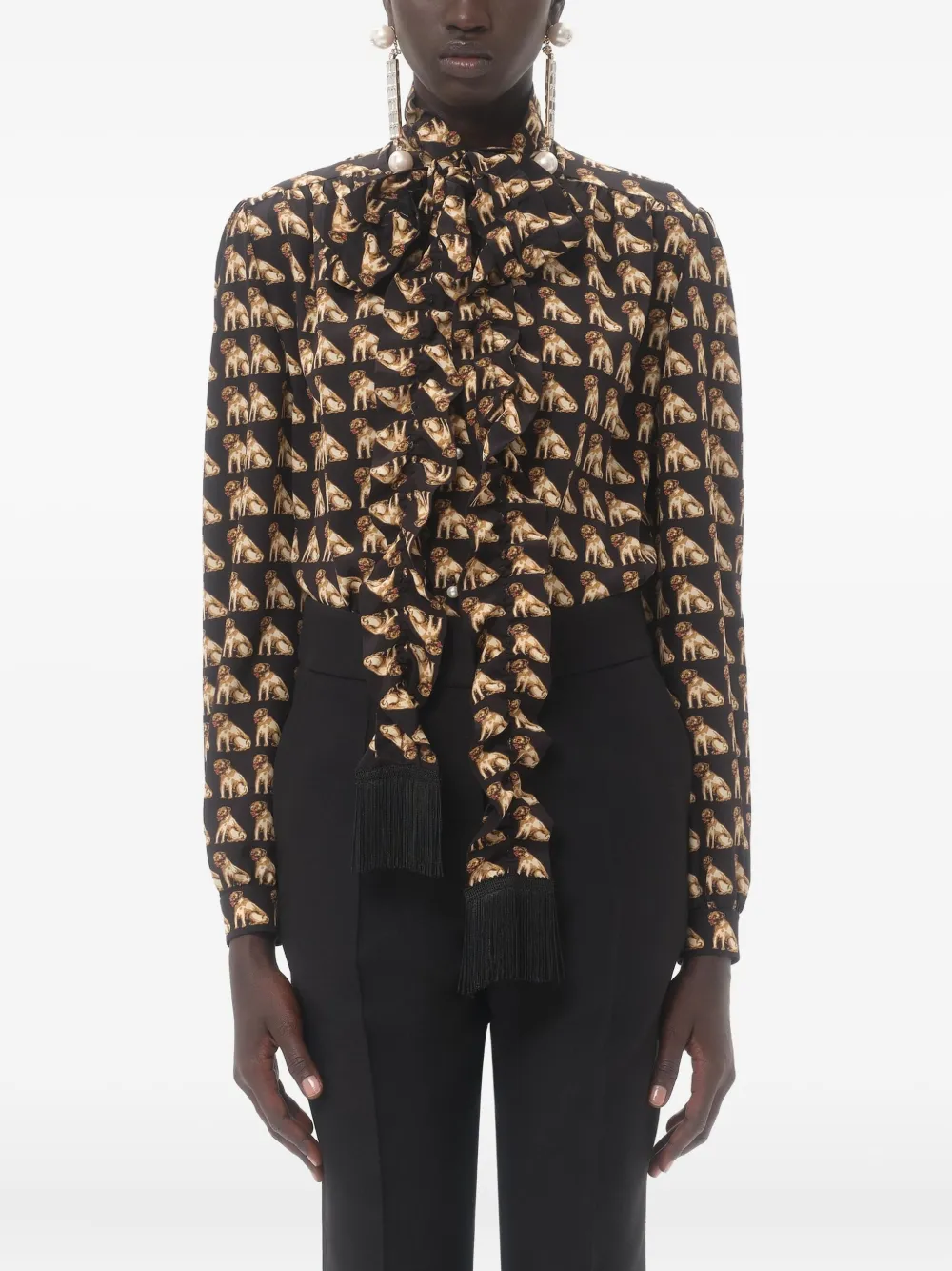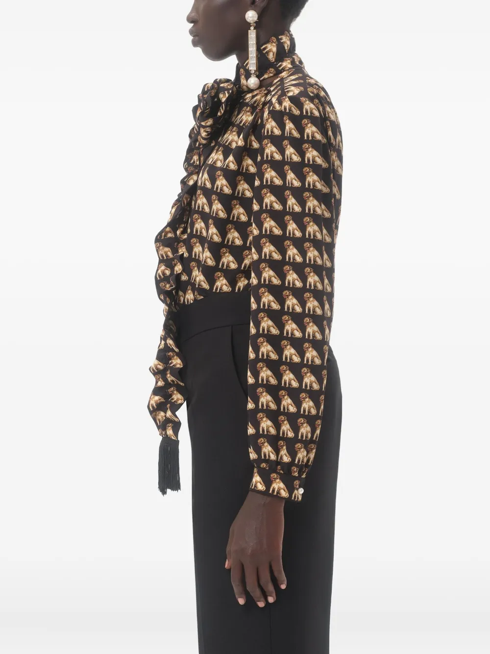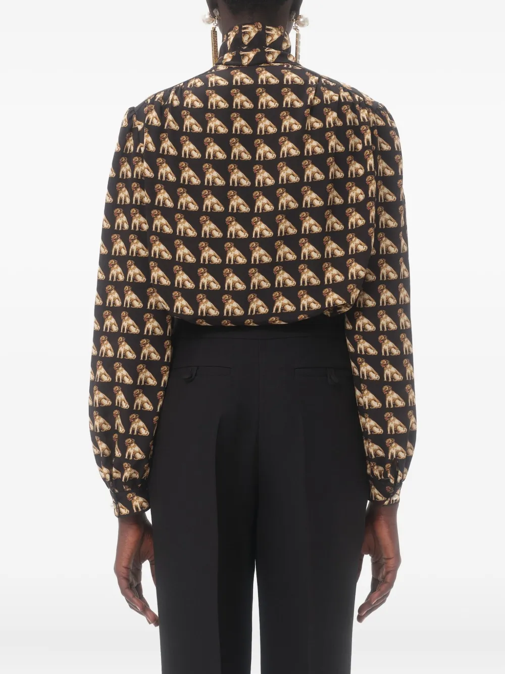 Блузка с бантом и принтом VALENTINO GARAVANI, черный