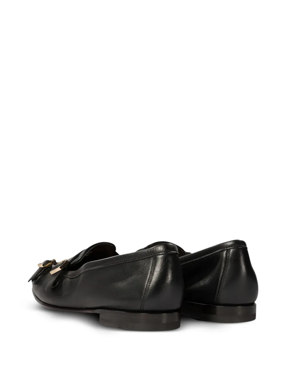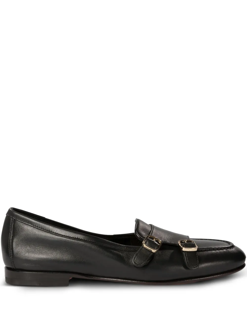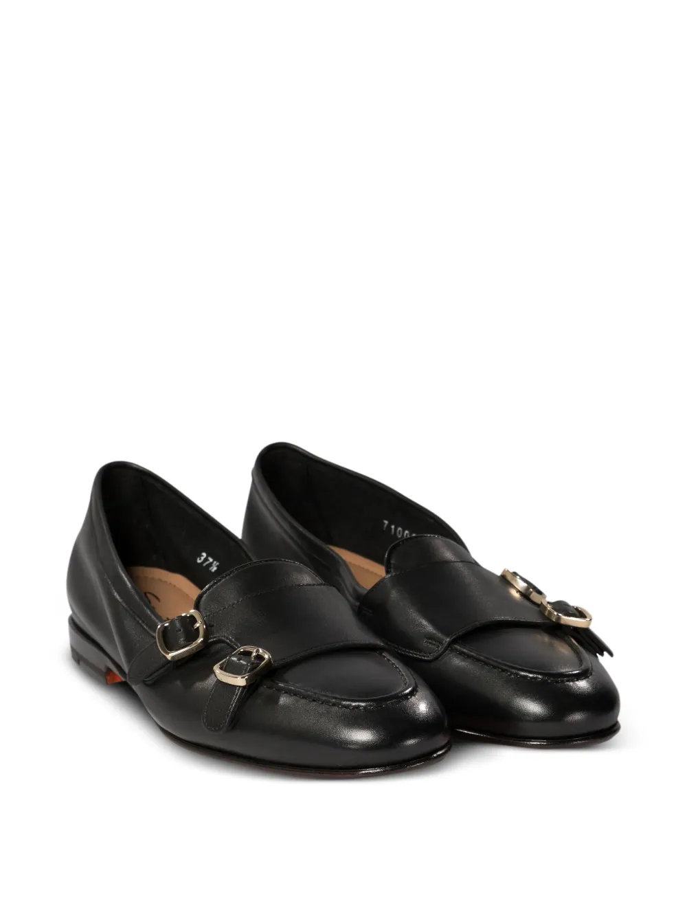 Черные туфли-слипоны с декоративной пряжкой, миндалевидным носком, фирменной стелькой