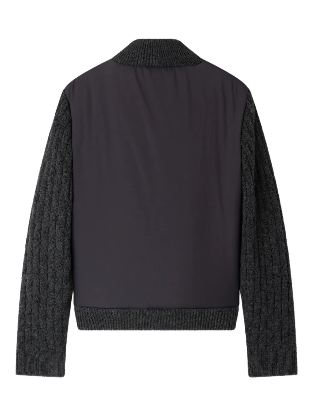 Черный панельный дизайн, рукава с косой вязкой, застежка-молния, нашивка с логотипом, воротник-стойка