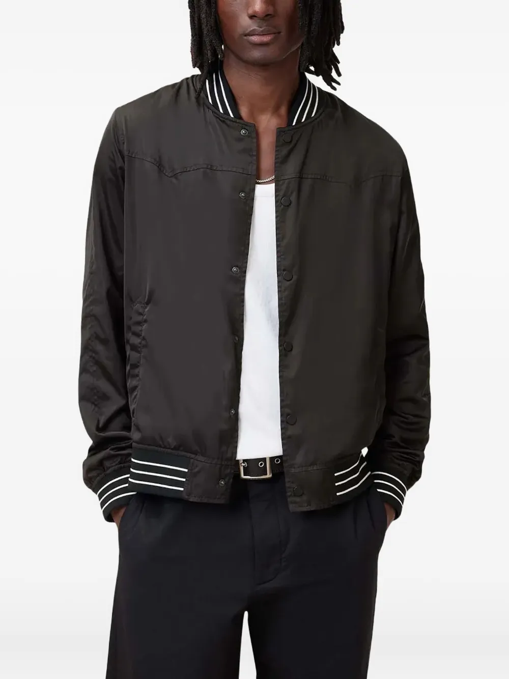 Двусторонний бомбер с воротником в рубчик AllSaints, черный