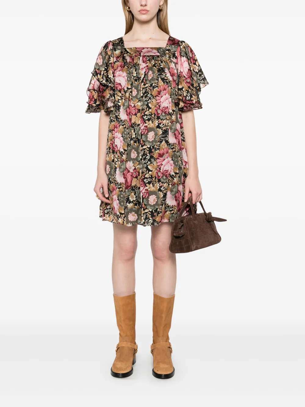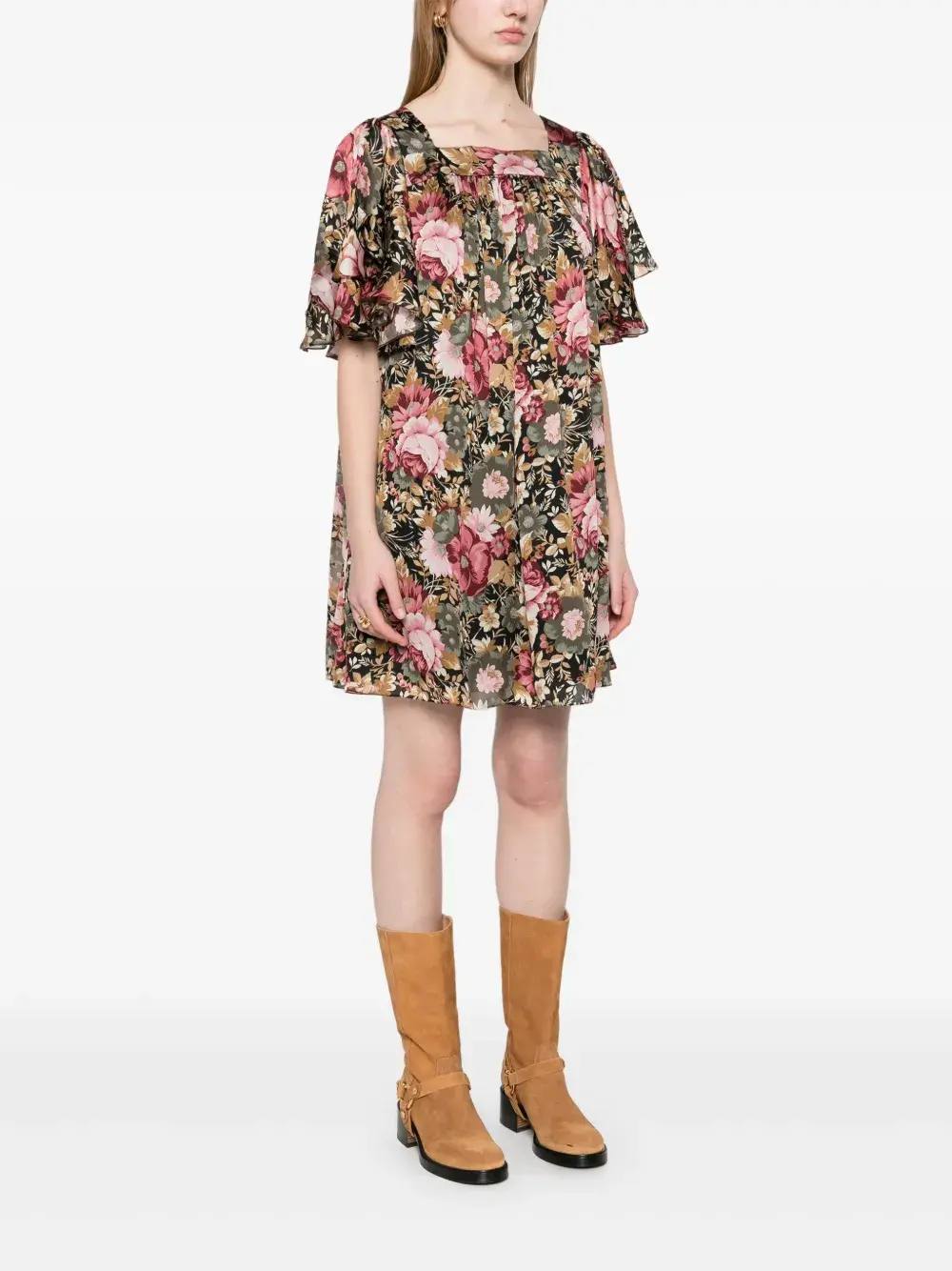 Платье мини с цветочным принтом CHLOÉ, черный 155 586₽