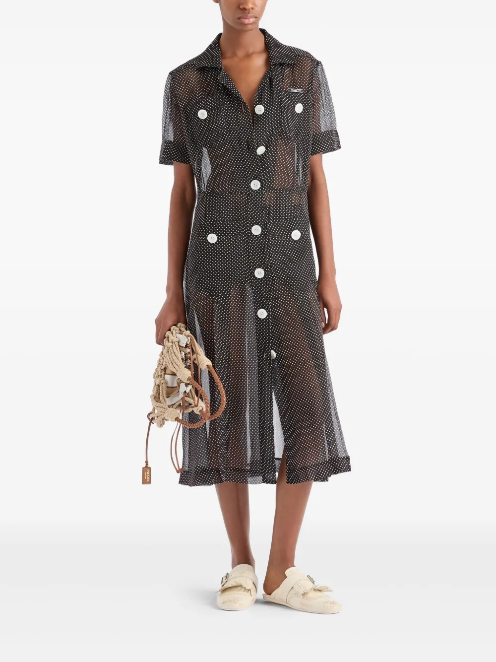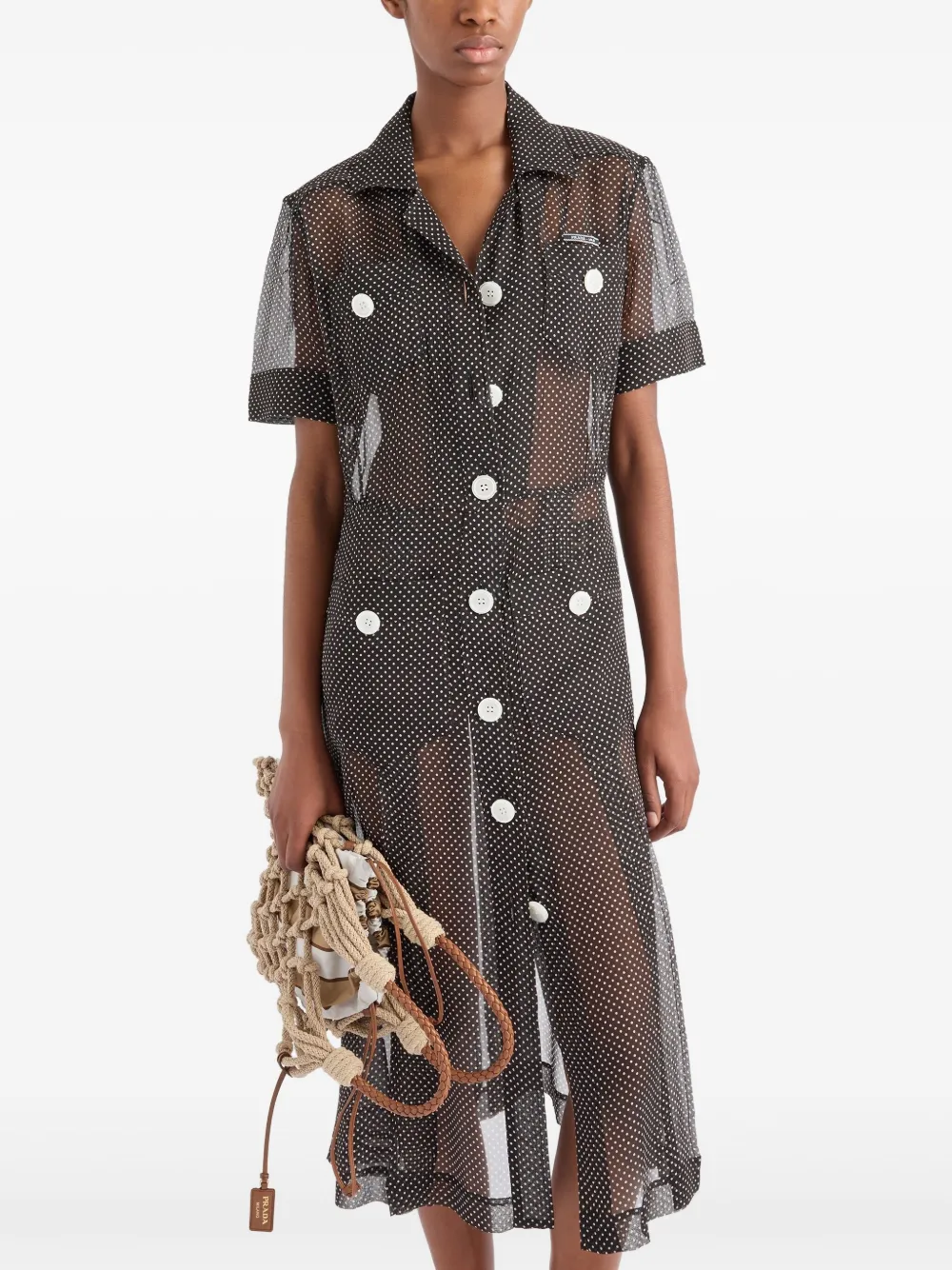 Платье-рубашка в горох Prada, черный