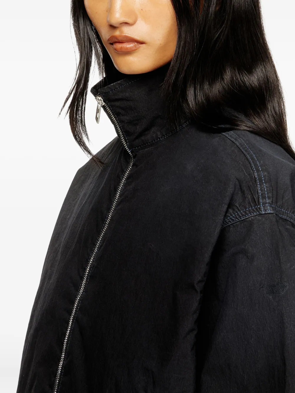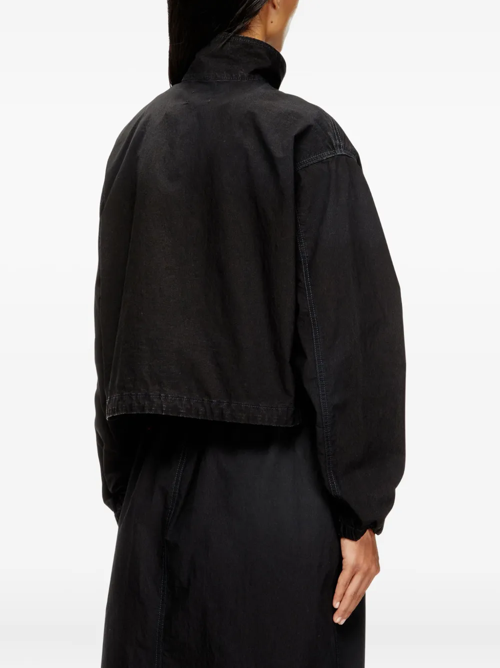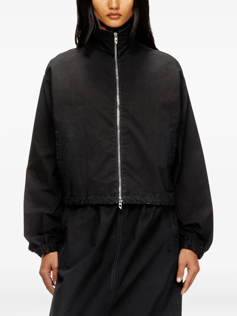Черный с высоким воротом, застежкой-молнией, длинными рукавами и эластичными манжетами