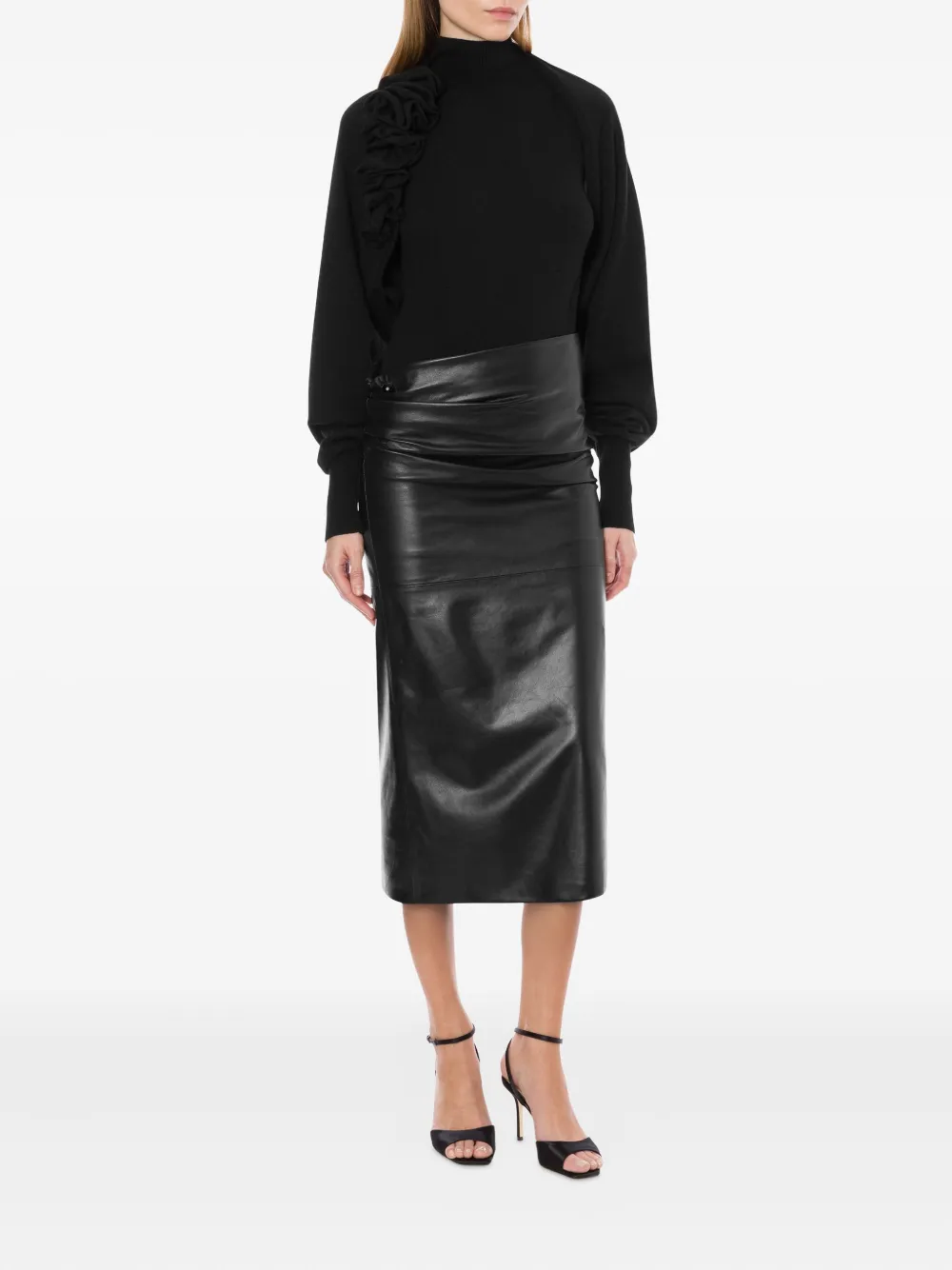 Кожаная юбка миди Alberta Ferretti, черный 91 765₽