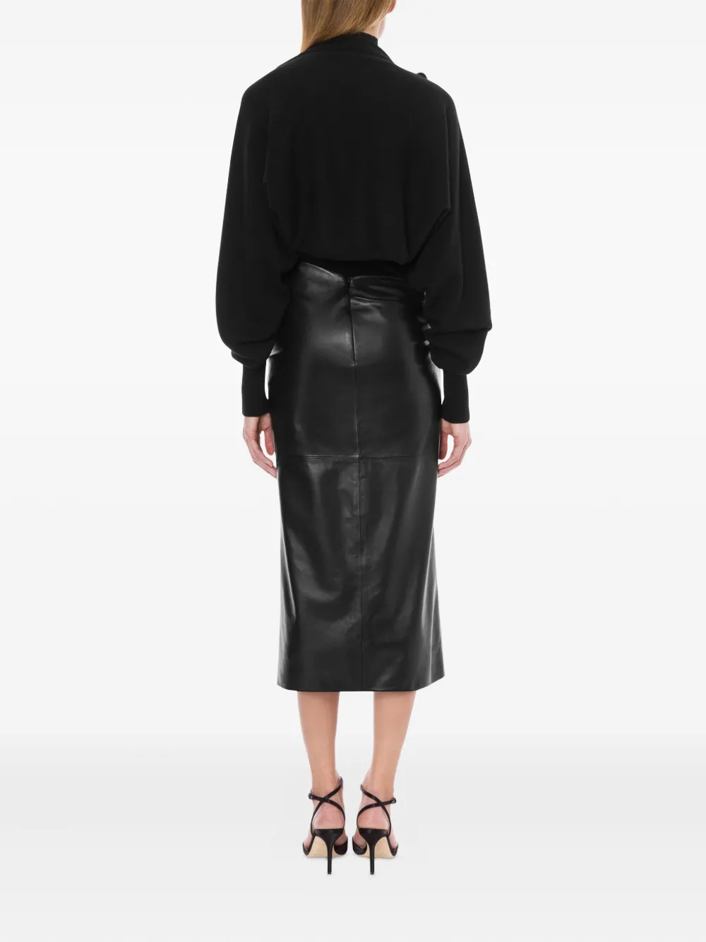 Кожаная юбка миди Alberta Ferretti, черный