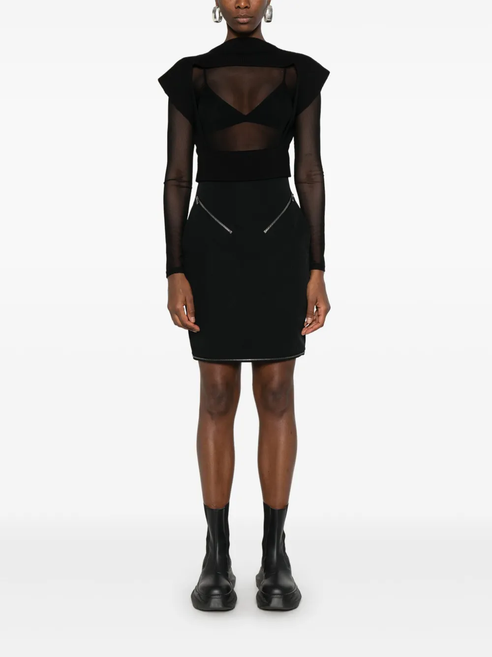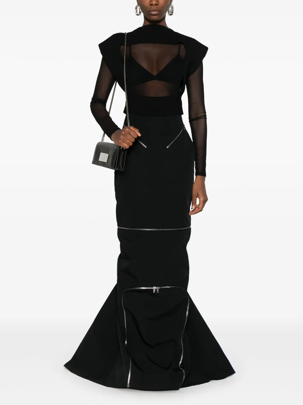 Черная потайная застежка-молния сзади, карман на молнии спереди, два накладных кармана спереди, съемные панели
