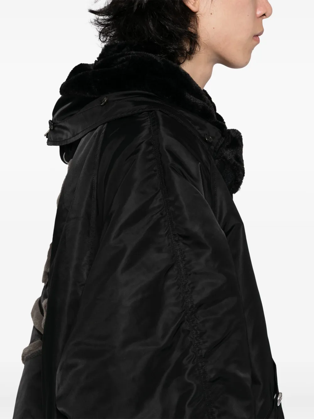 Черный капюшон с завязками на резинке и манжетами