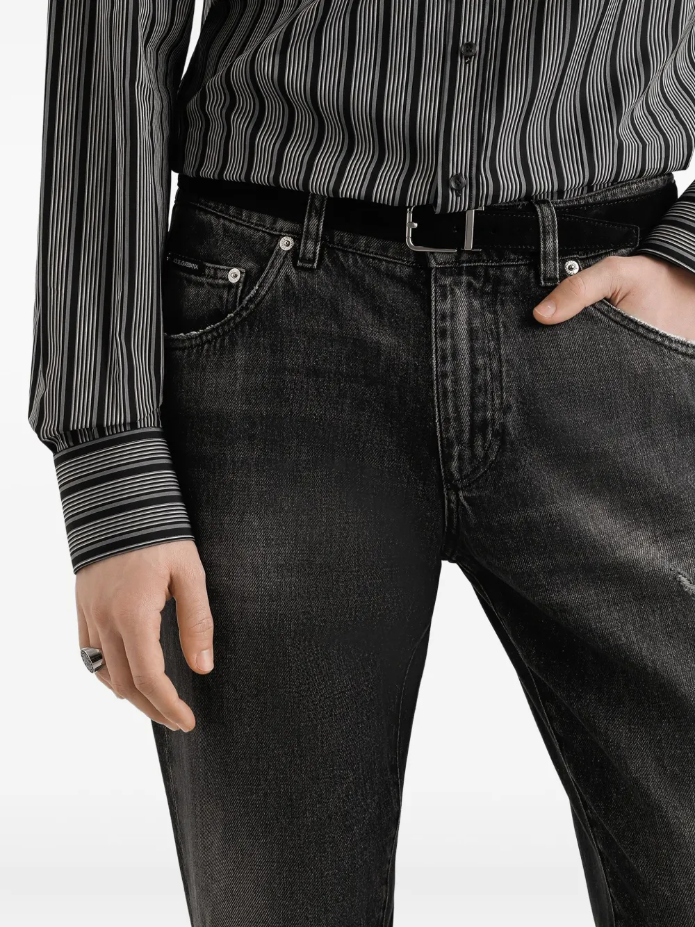 Джинсы с эффектом потертости и логотипом DOLCE & GABBANA, черный