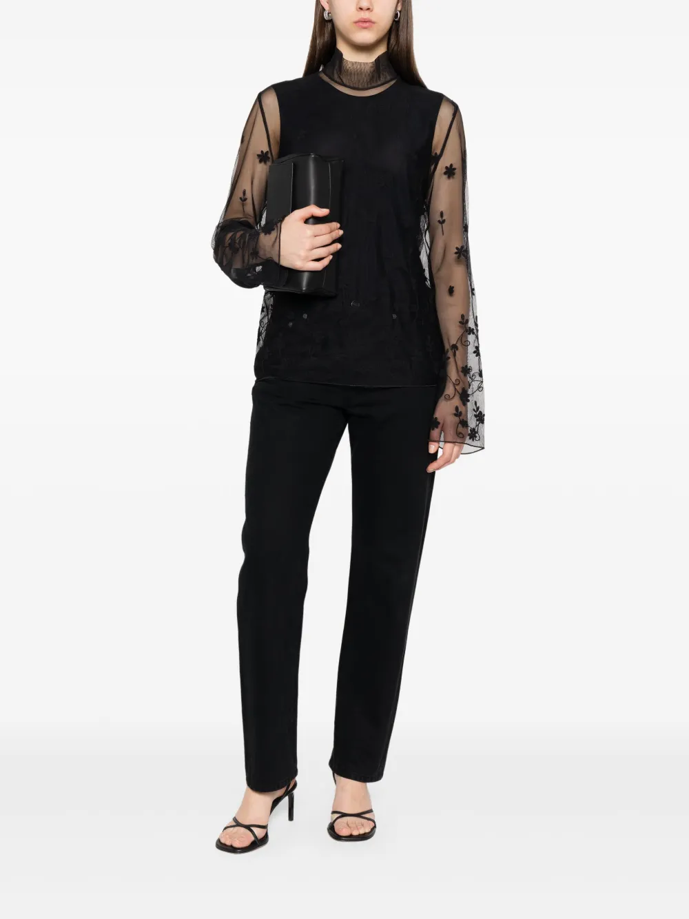 Рубашка с цветочной вышивкой TOTEME, черный