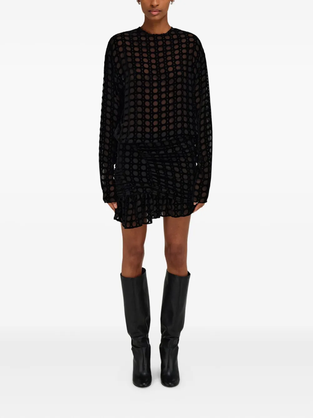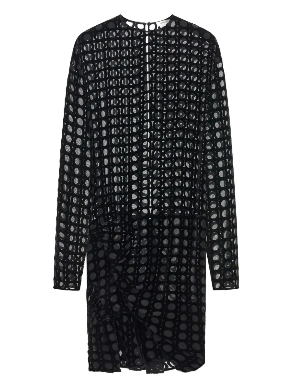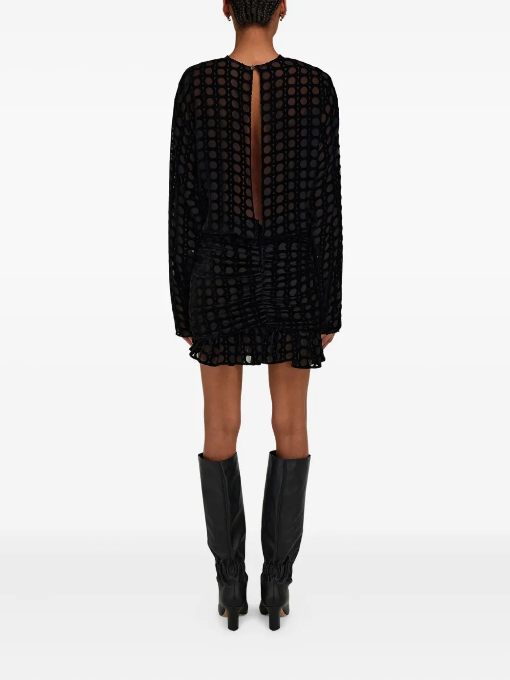 Черный бархат деворе, узор Ганчини, длинные рукава, асимметричный подол, присборенные детали, открытая спина
