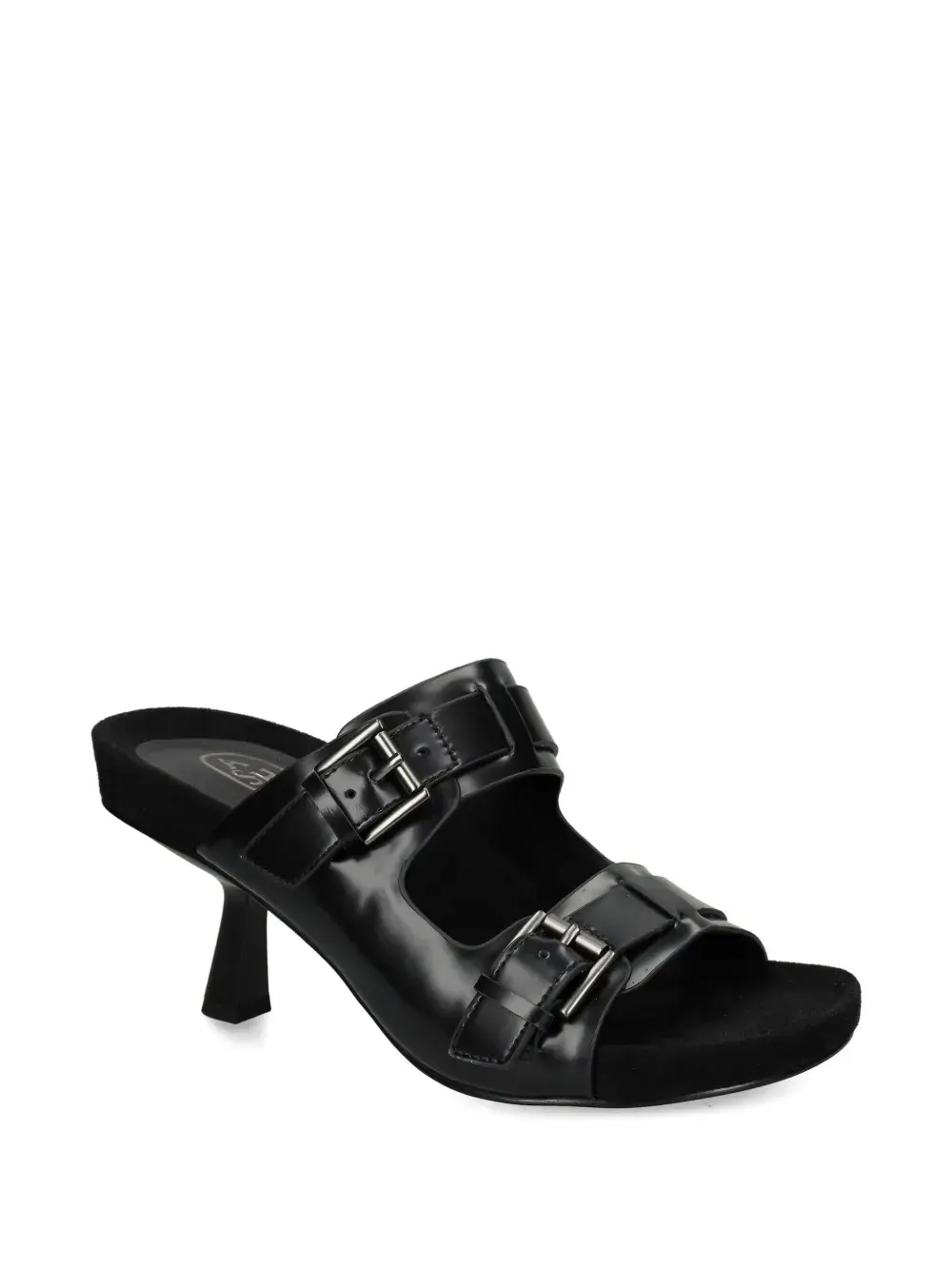 Черный дизайн с двумя ремешками, открытый носок, рельефный каблук 70 мм