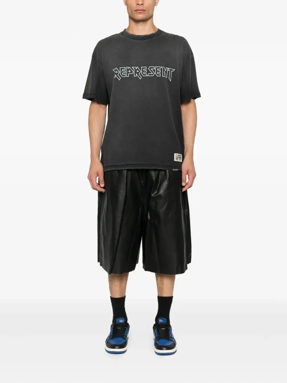 Черный логотип с принтом спереди, круглый вырез, короткие рукава