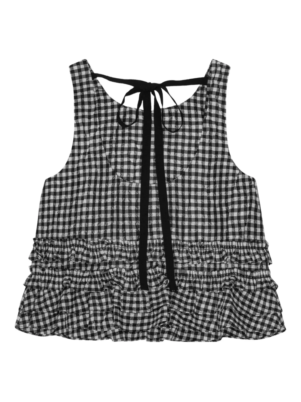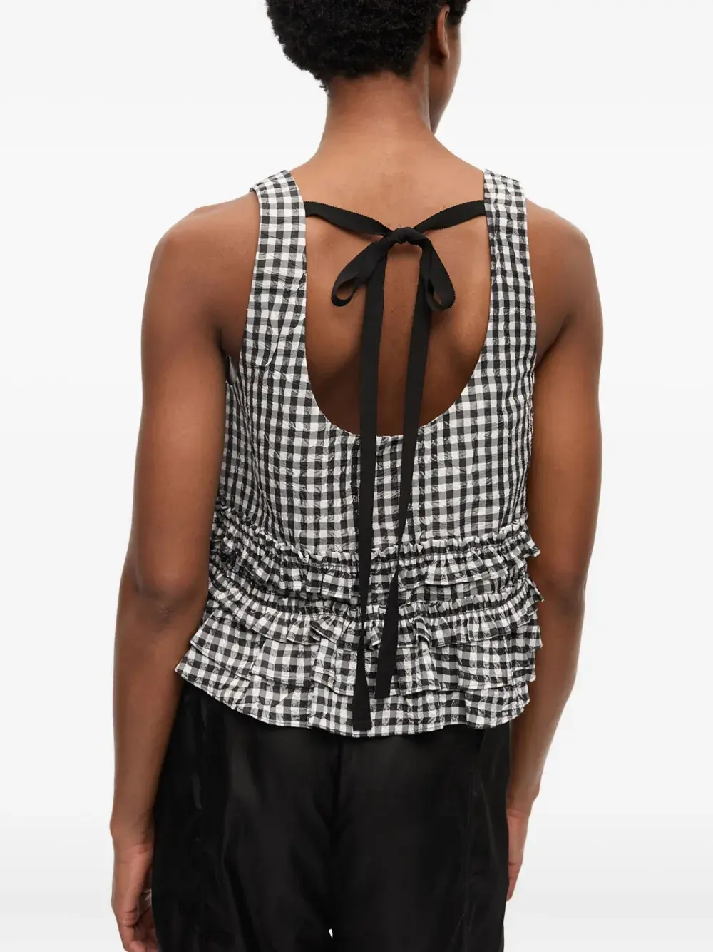 Клетчатый топ с оборками GANNI, черный 18 802₽