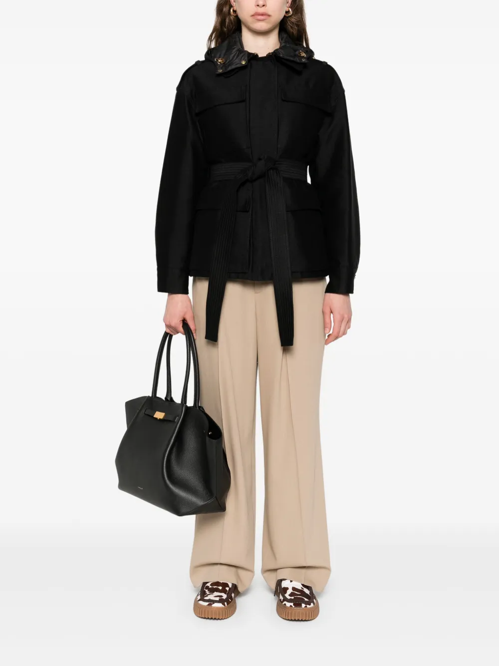 Куртка с капюшоном и поясом MONCLER, черный 281 556₽