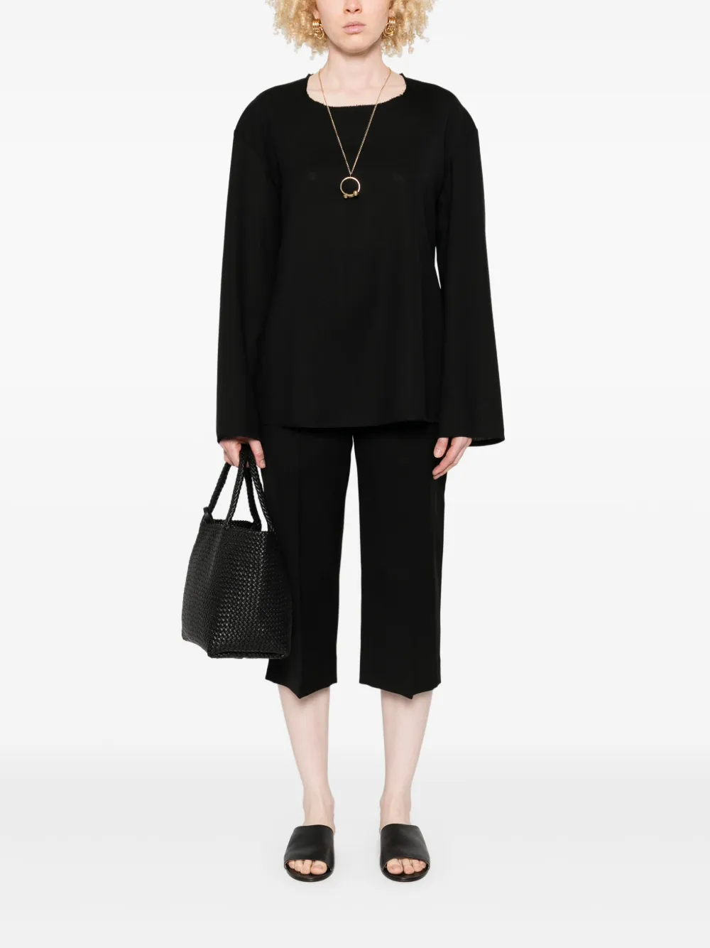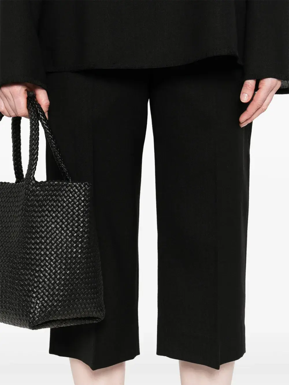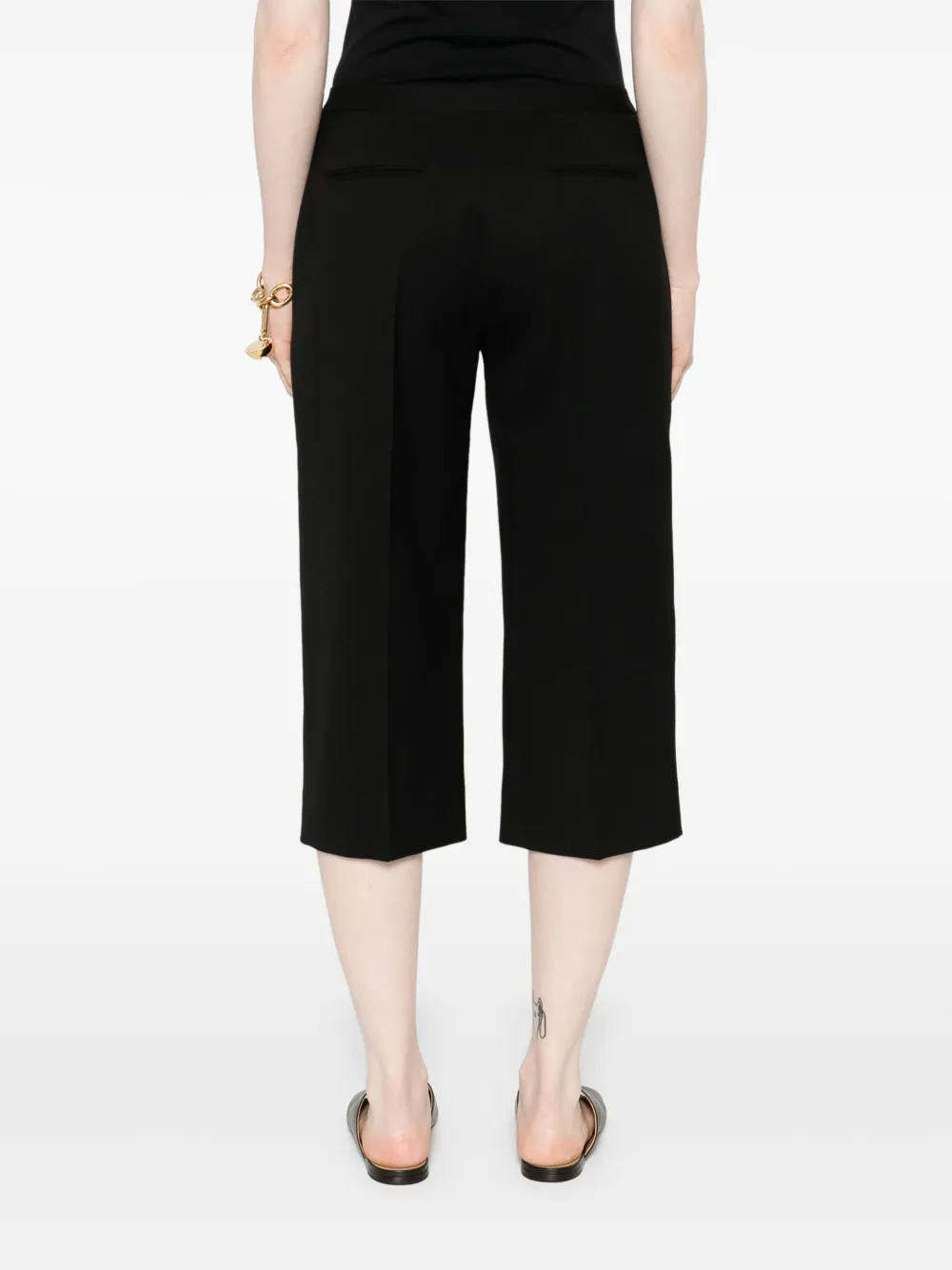 Черный, потайная застежка спереди, два боковых кармана, два прорезных кармана сзади, укороченные штанины. Сделано в Италии.