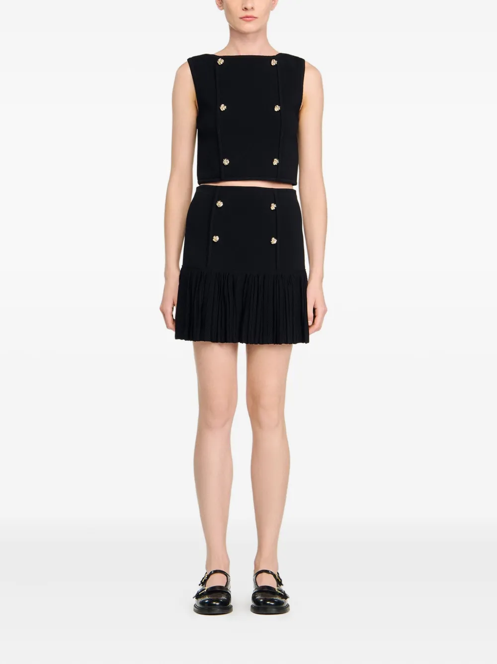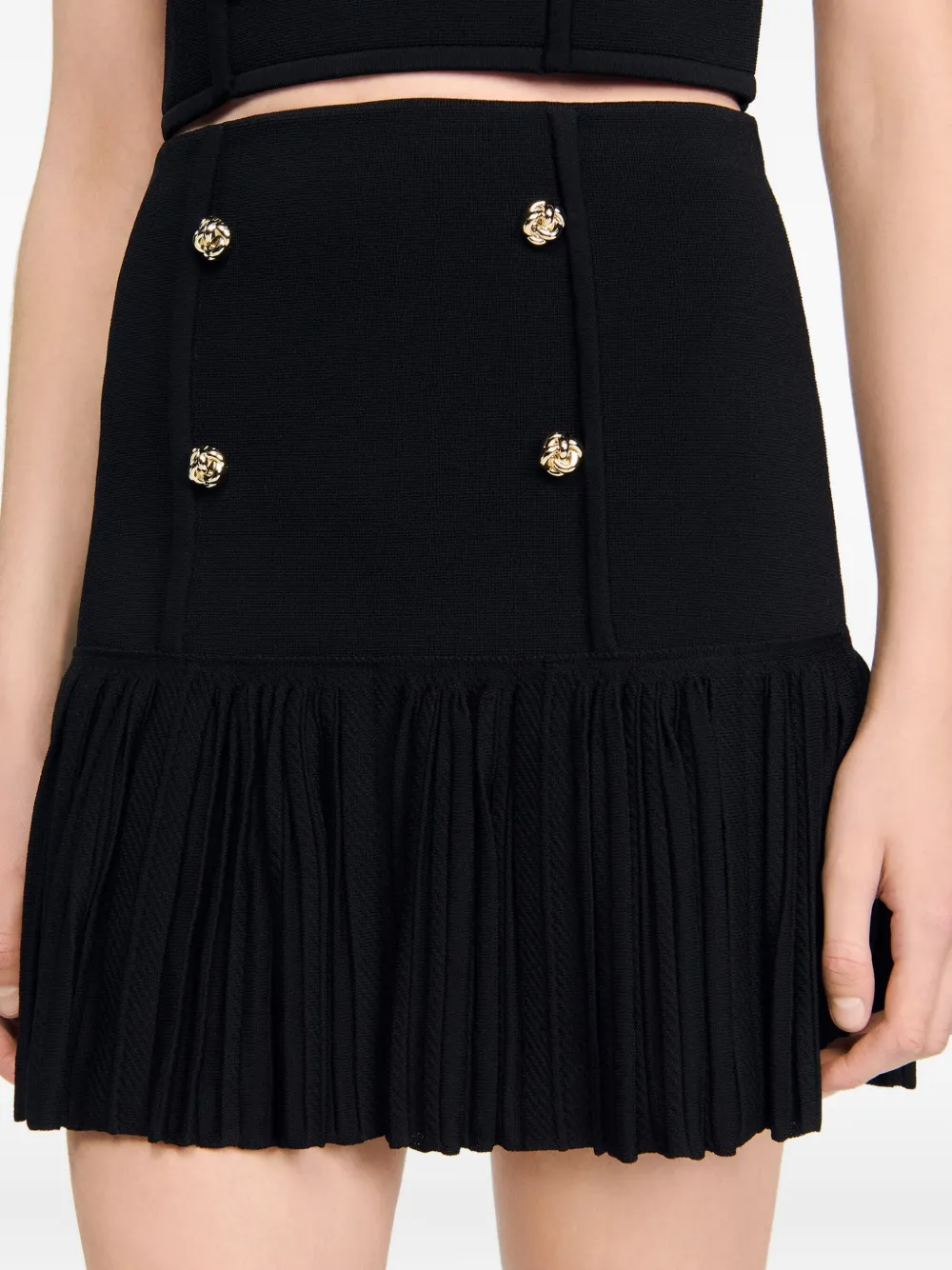 Плиссированная двубортная юбка SANDRO, черный