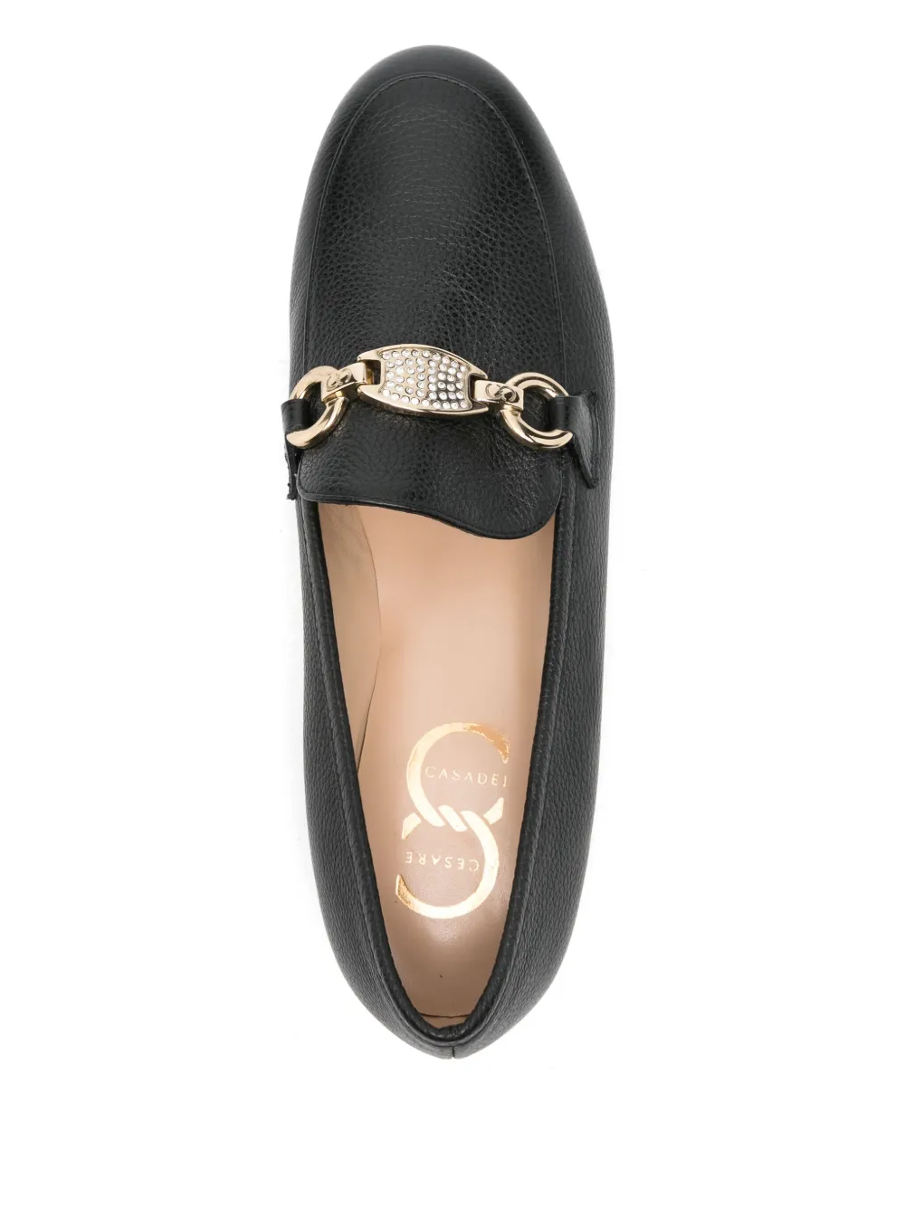 Черный круглый носок плоская подошва серебристая пластинка с логотипом