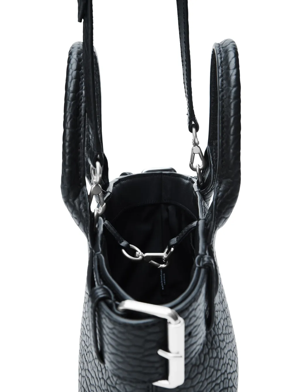 Черная текстурированная кожаная застежка-пряжка, верхние ручки, съемный плечевой ремень, основание с заклепками