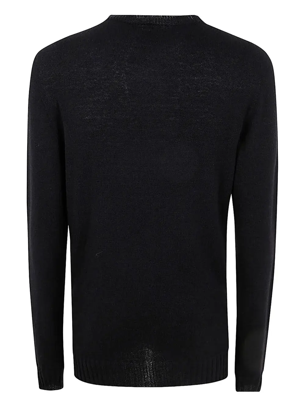 Черный круглый вырез горловины, длинные рукава, ребристые манжеты, ребристый подол