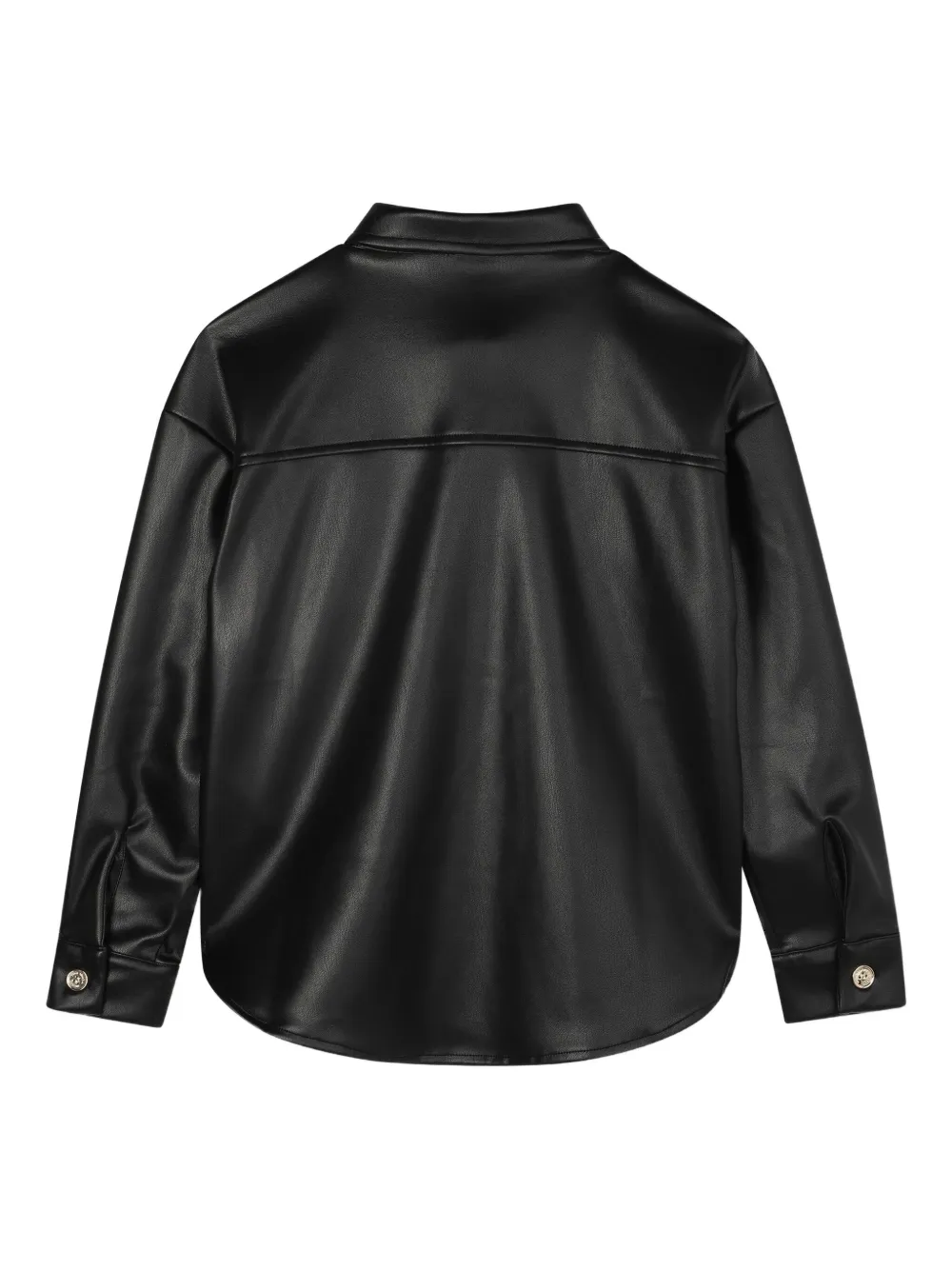 Черный, два нагрудных кармана, застежка на пуговицы, острый воротник, манжеты на пуговицах