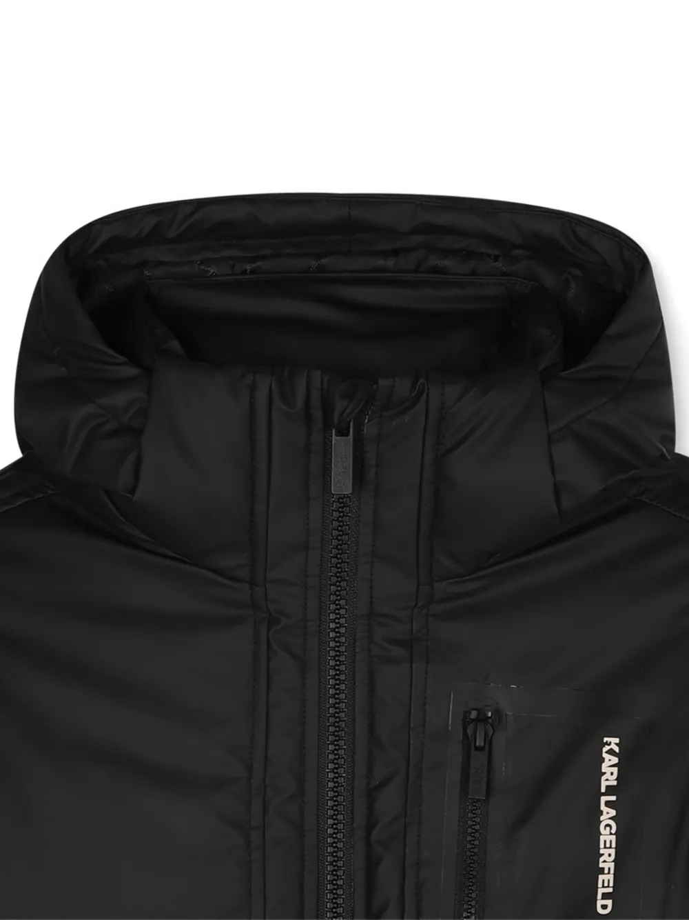 Пуховик с капюшоном KARL LAGERFELD KIDS, черный