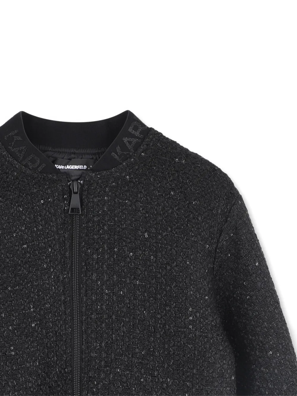 Фактурный бомбер на молнии KARL LAGERFELD KIDS, черный